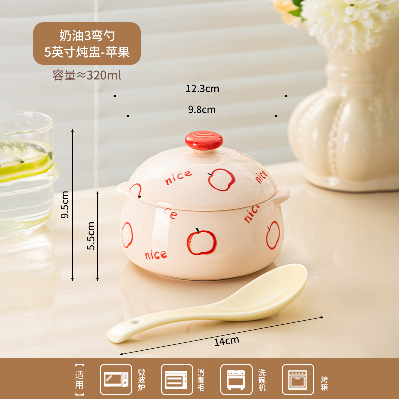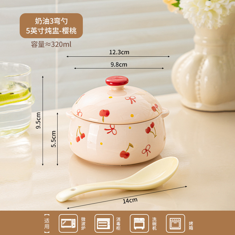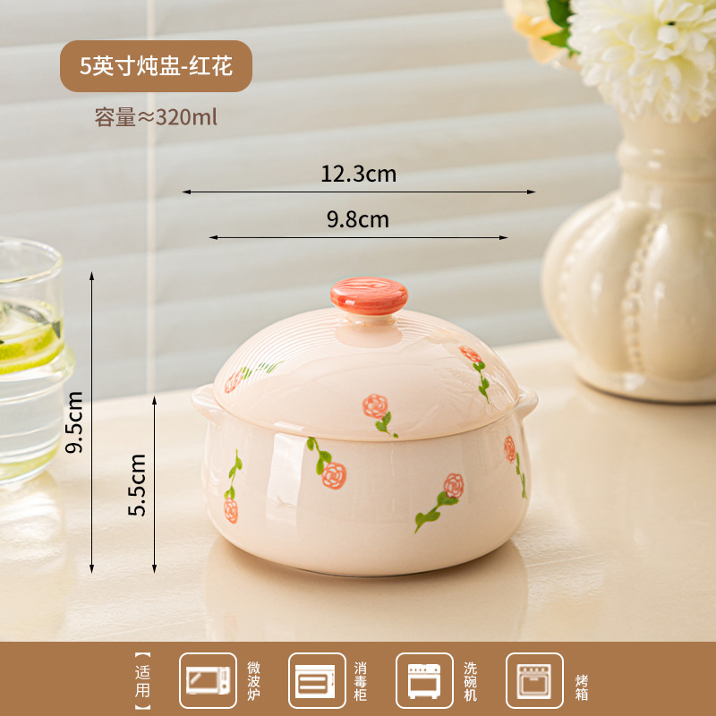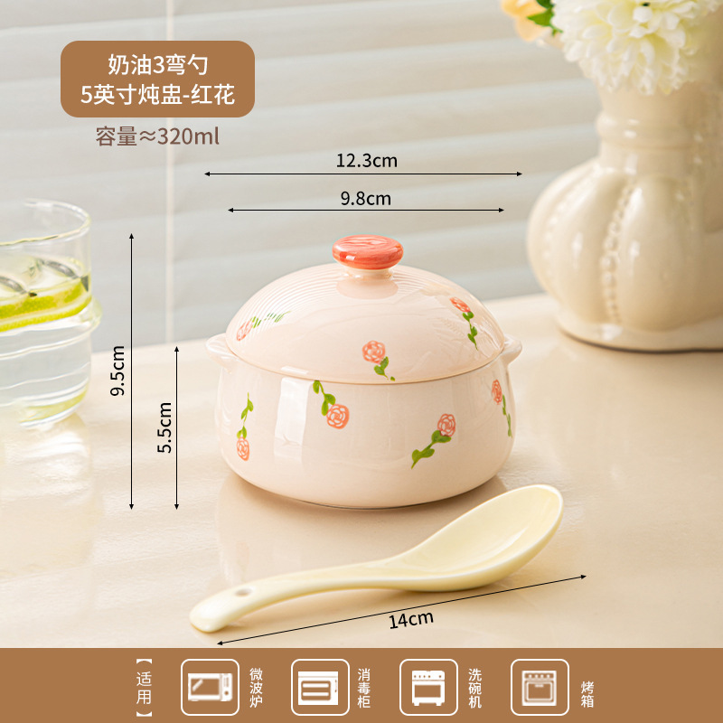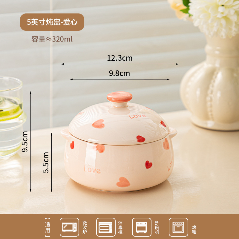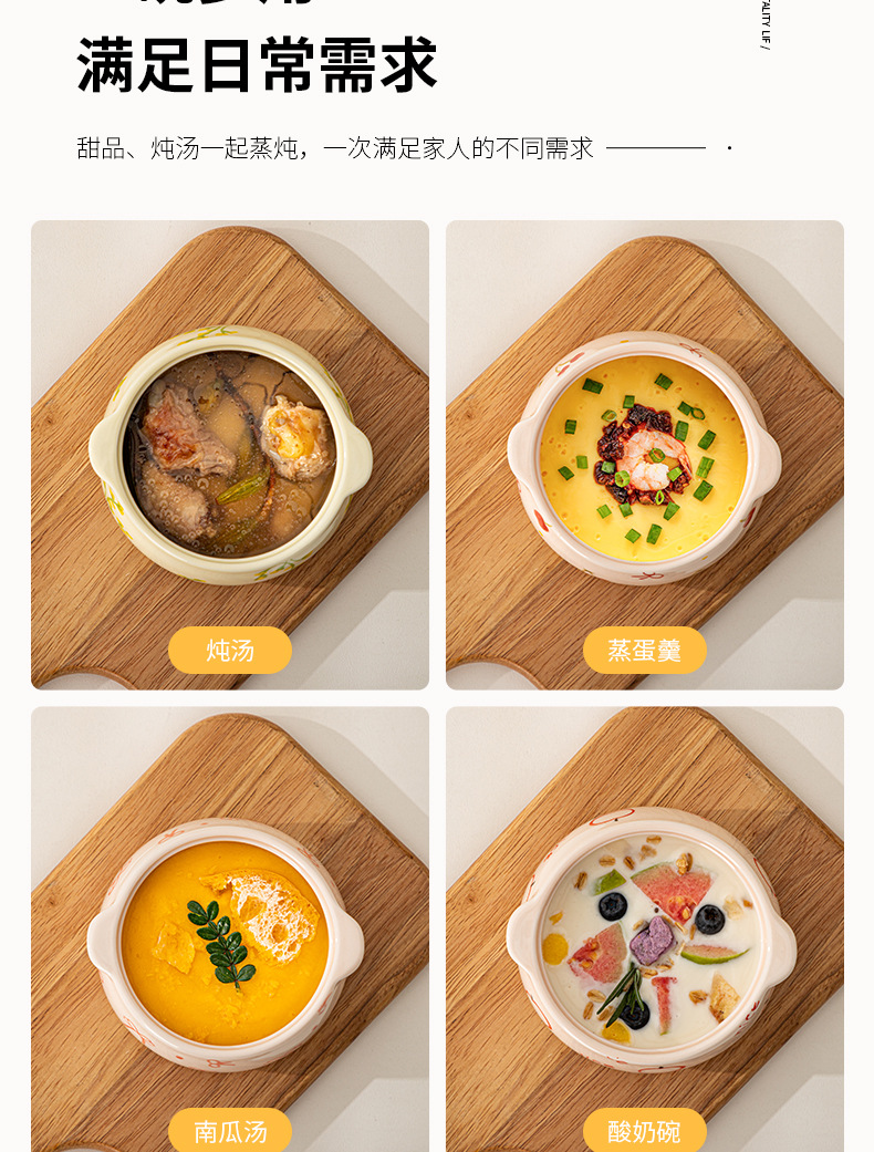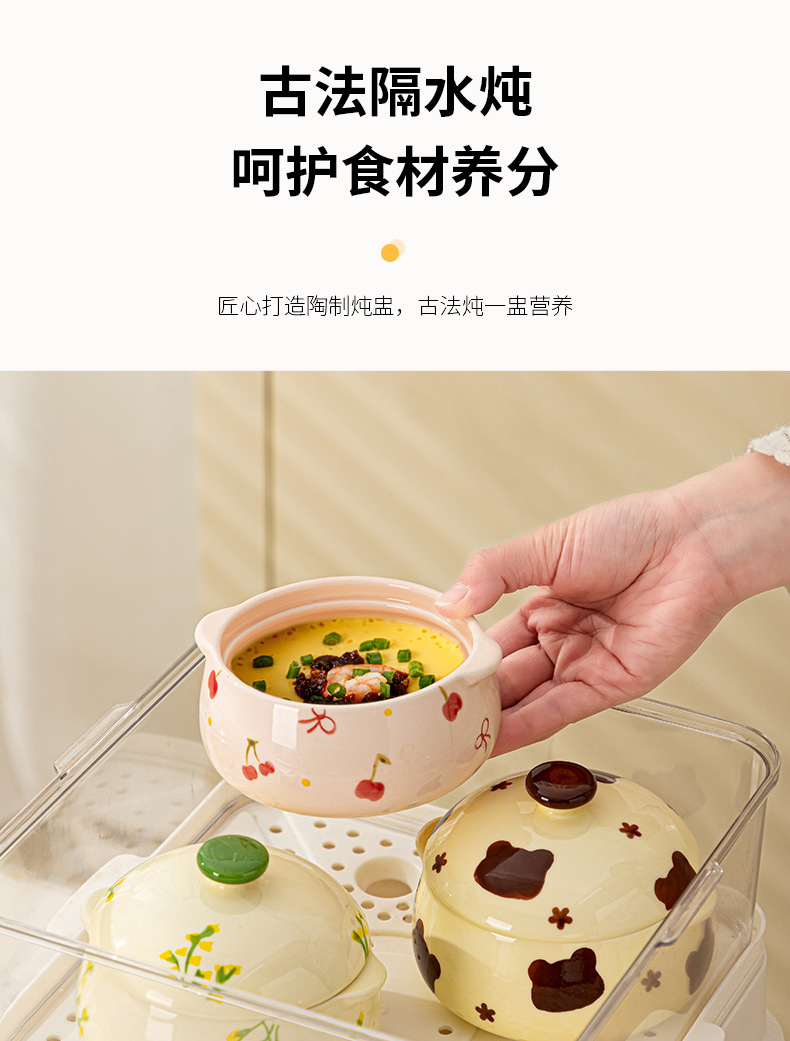 蒸蛋碗双耳带盖瓦罐炖盅汤盅专用陶瓷碗家用鸡蛋羹蒸炖盅陶瓷餐具