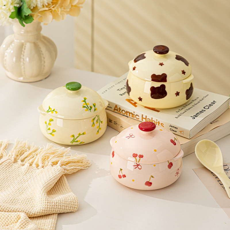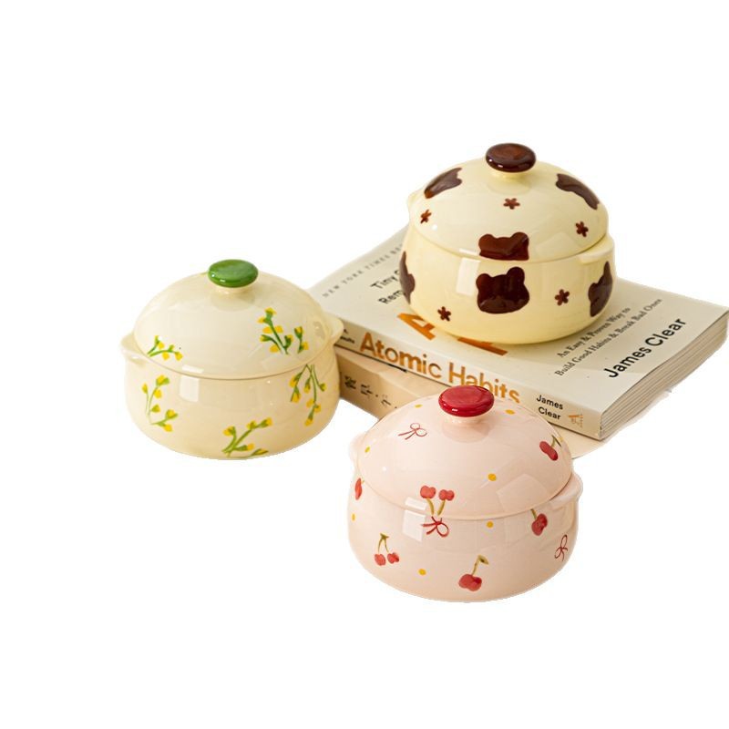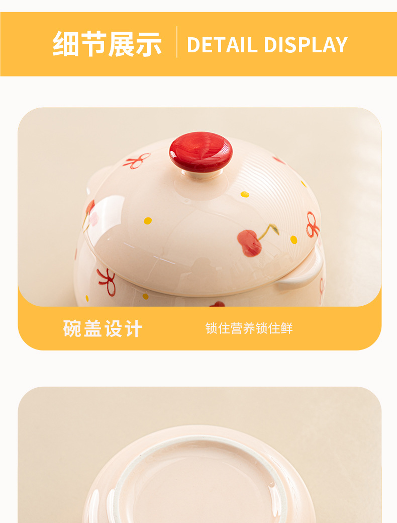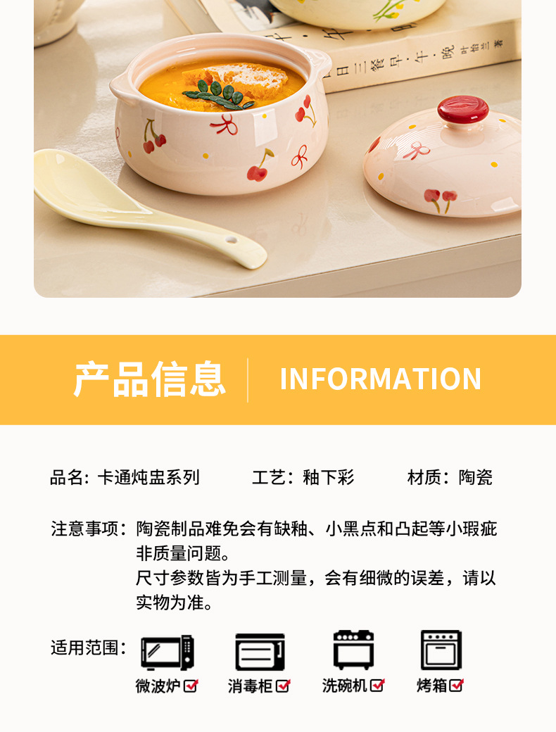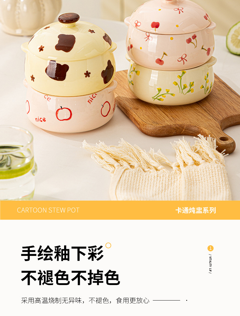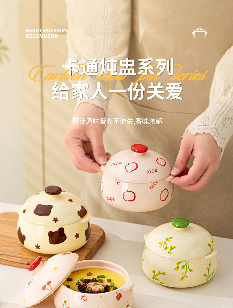 蒸蛋碗双耳带盖瓦罐炖盅汤盅专用陶瓷碗家用鸡蛋羹蒸炖盅陶瓷餐具