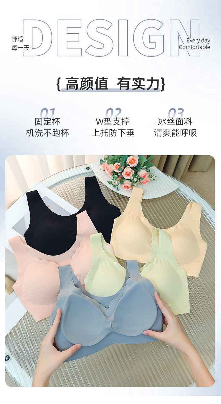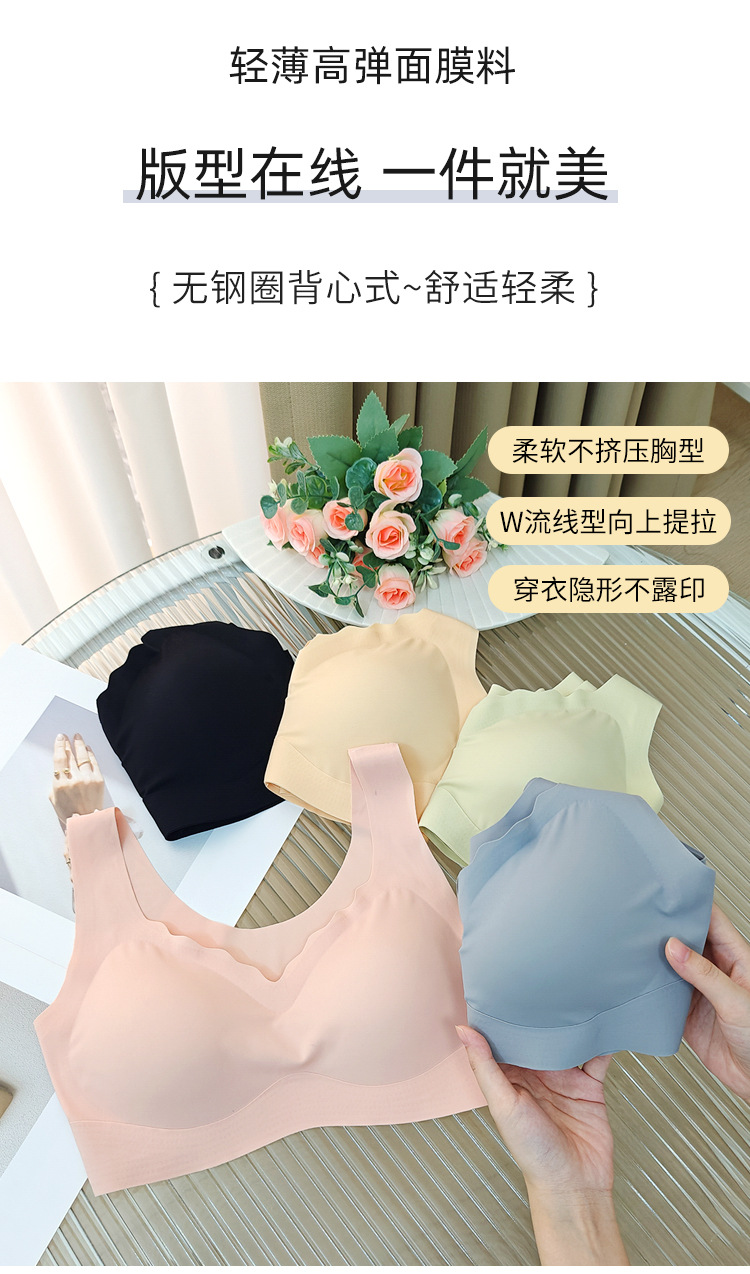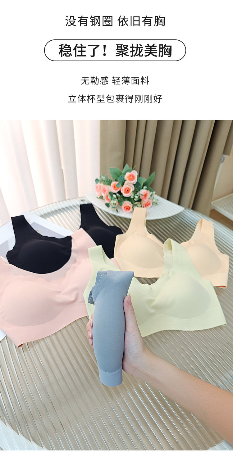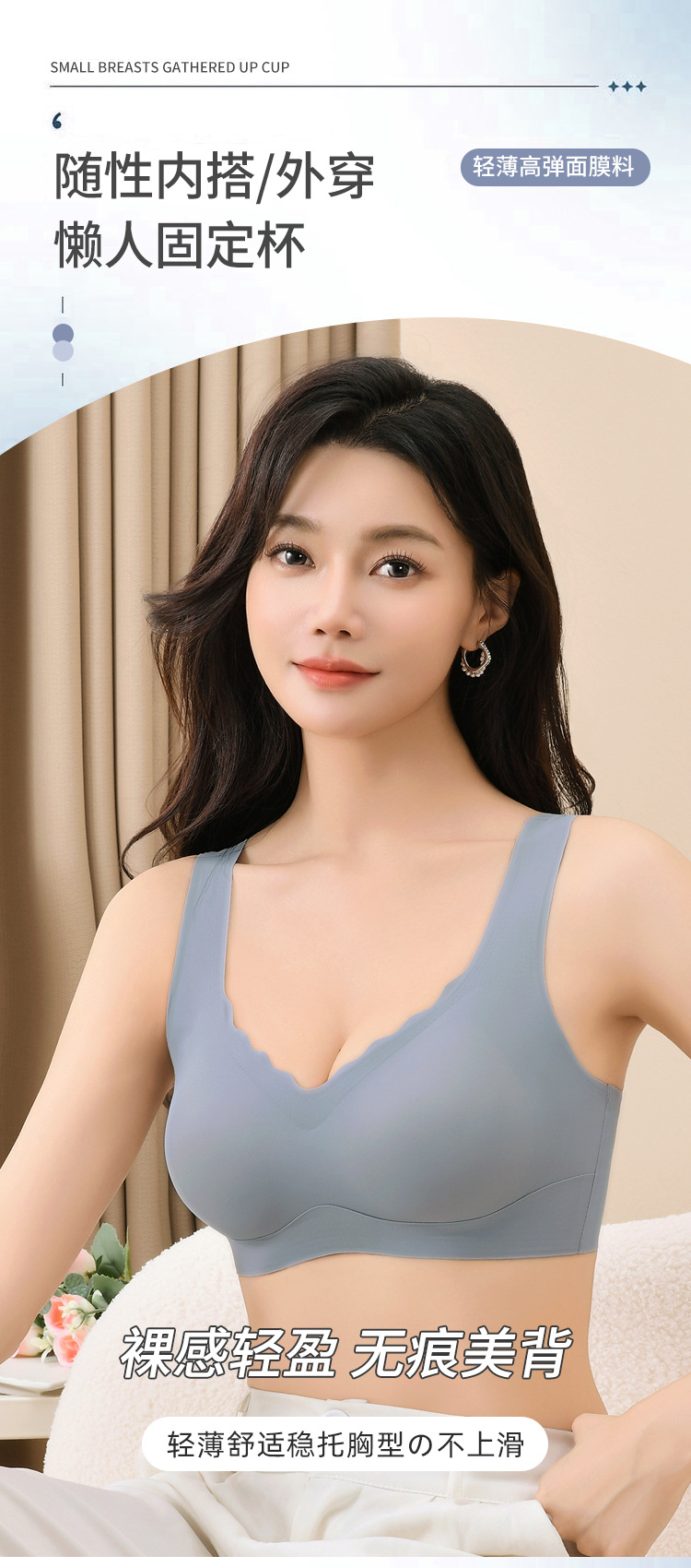 一体式薄款无痕无钢圈固定杯大码聚拢收副乳运动内衣女美背文胸罩