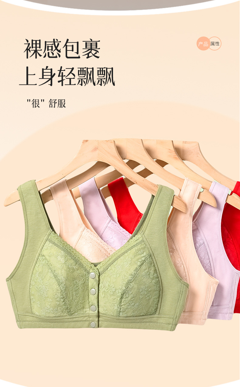 纯棉妈妈内衣中老年人内衣背心式前扣文胸无钢圈母乳文胸女胸罩薄
