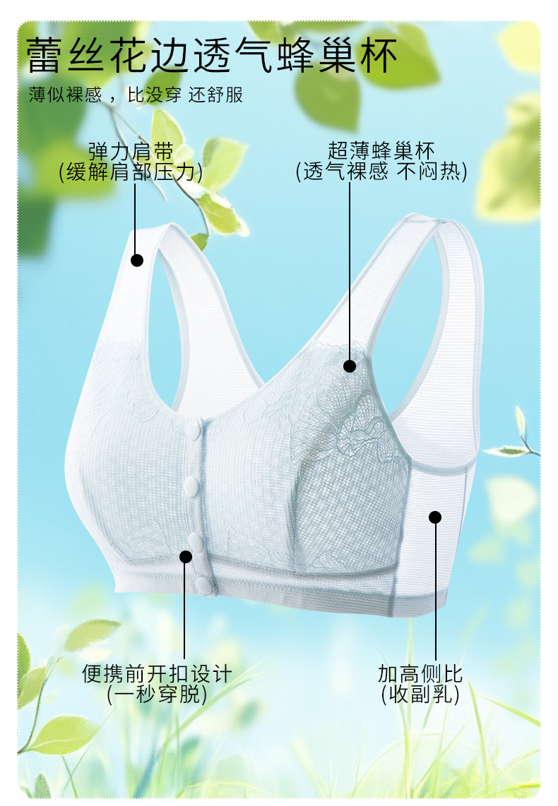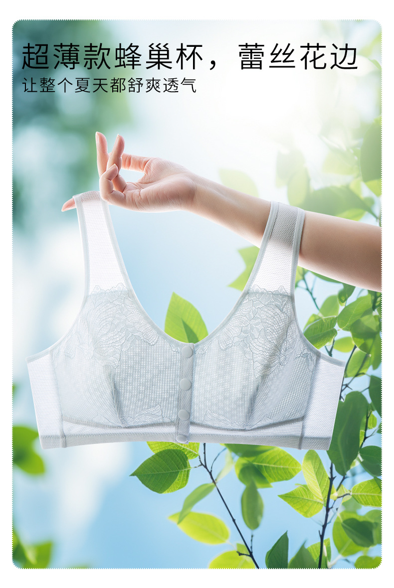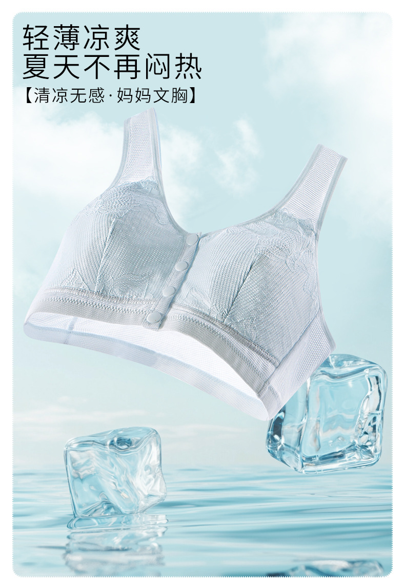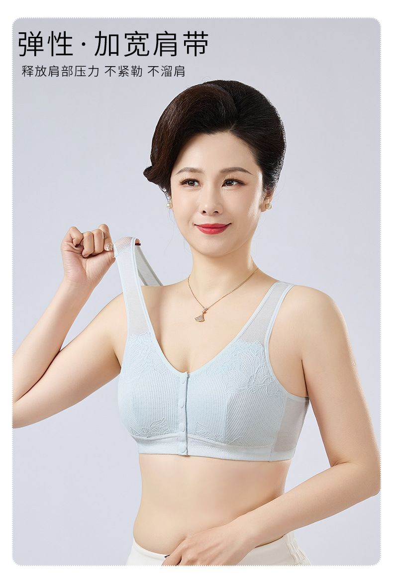 [夏季薄棉]2025新款中老年文胸妈妈内衣前扣扣无钢圈纯棉舒适4023