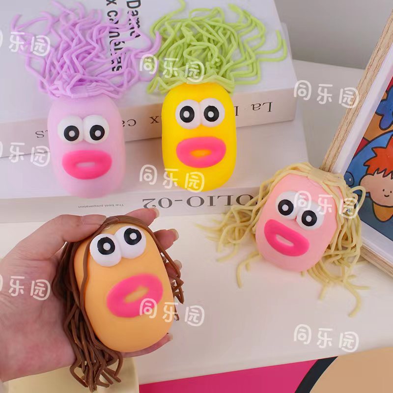 同乐园泡面头捏捏乐减压玩具慢回弹解压义乌扯头发地摊发泄爆款球