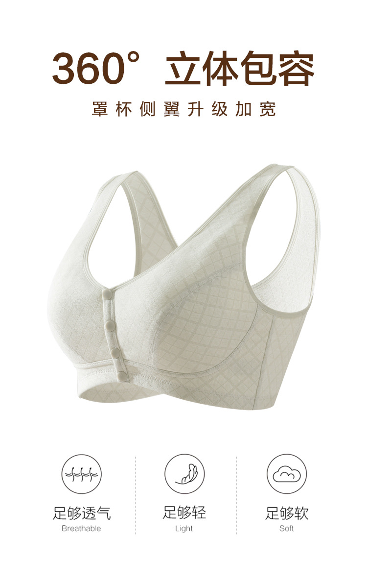 【柔软彩棉】女士内衣中老年妈妈文胸防下垂胸罩前开扣大码棉背心
