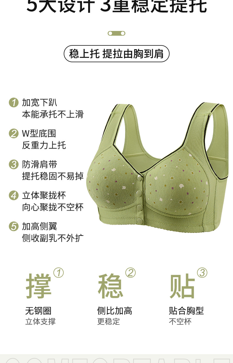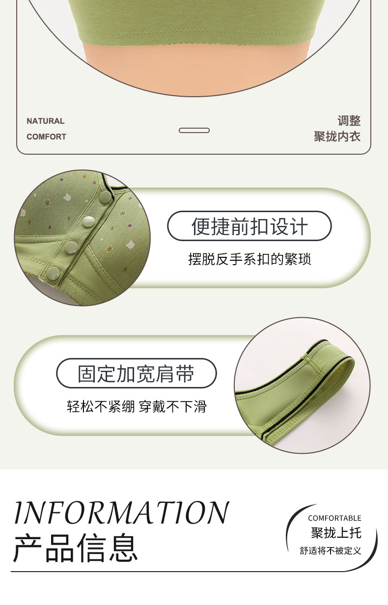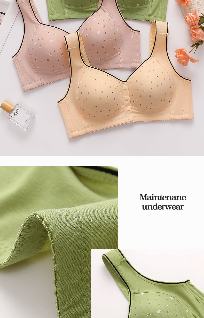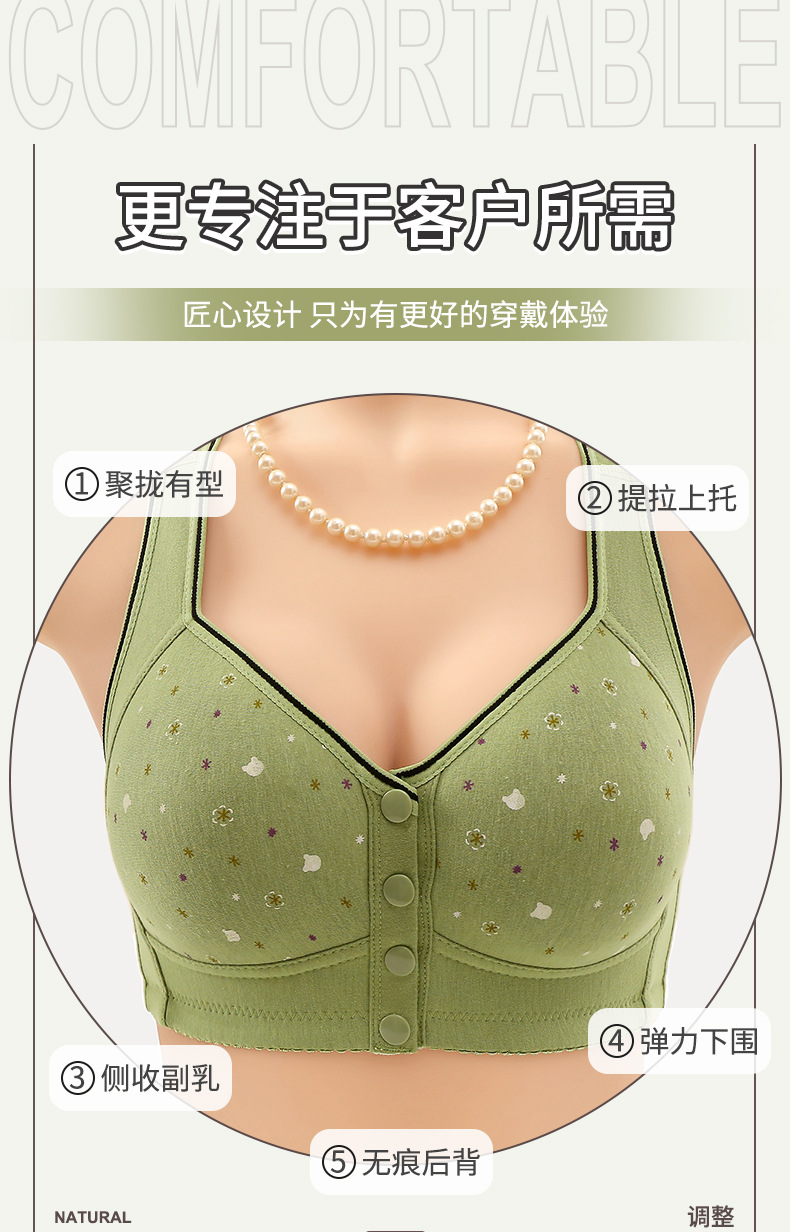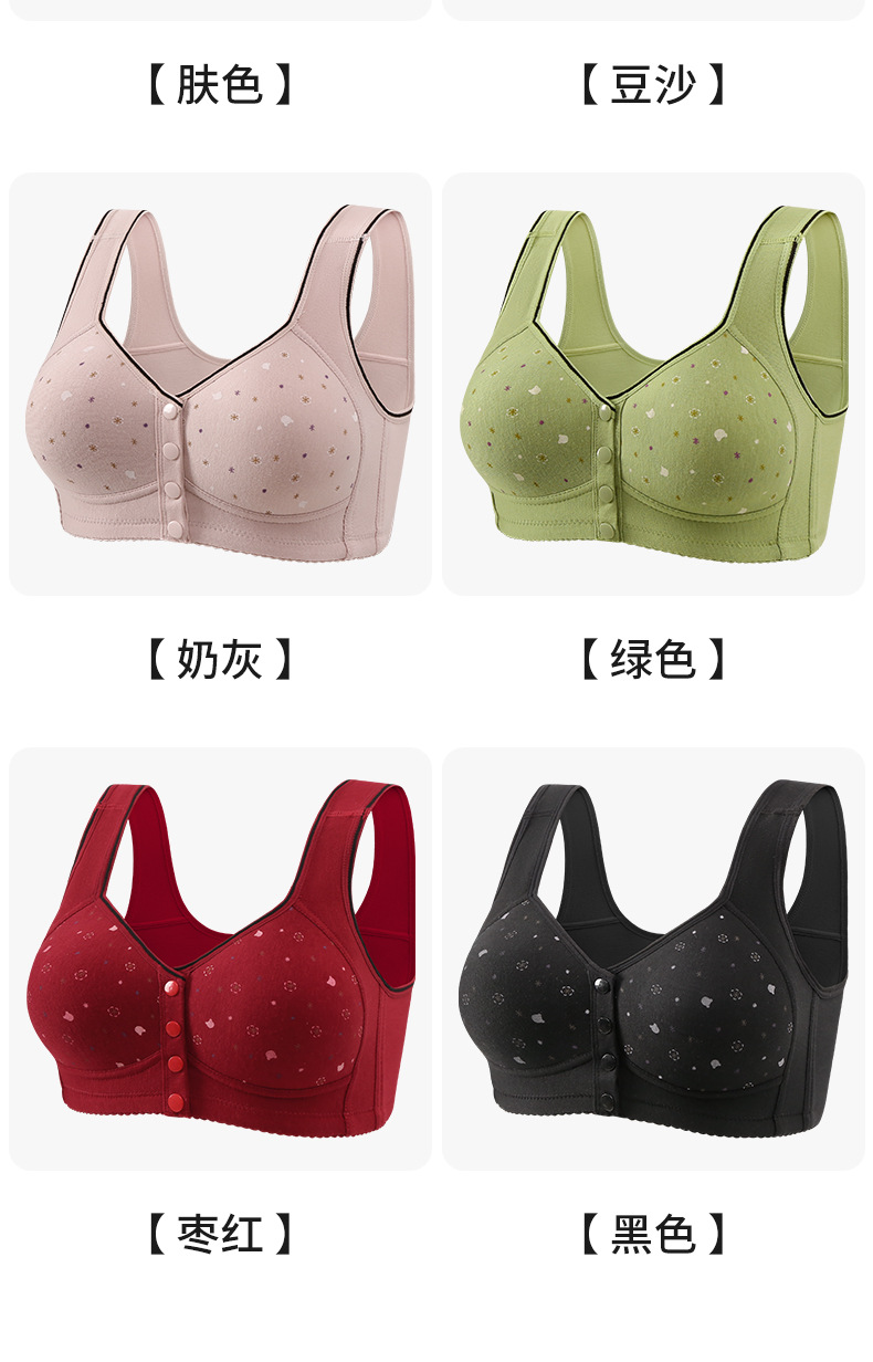 新款中老年妈妈前扣棉质文胸内衣女海绵透气背心无钢圈大码胸罩