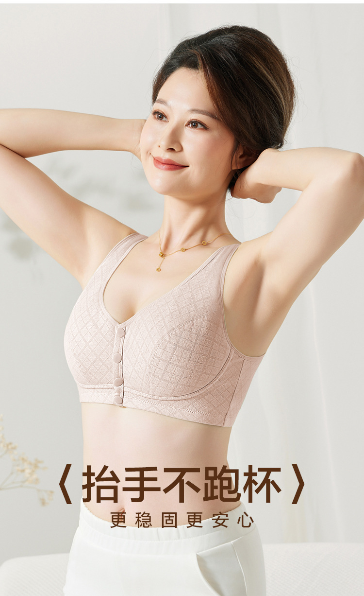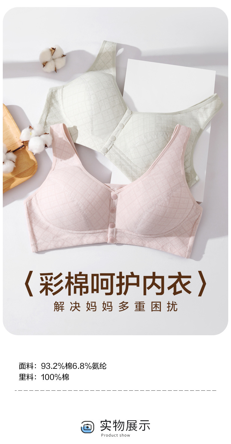 【柔软彩棉】女士内衣中老年妈妈文胸防下垂胸罩前开扣大码棉背心