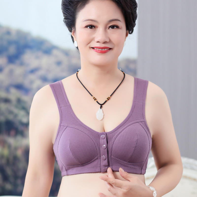 妈妈内衣文胸中年妇女老年人女背心式前扣大码50岁无钢圈纯棉胸罩