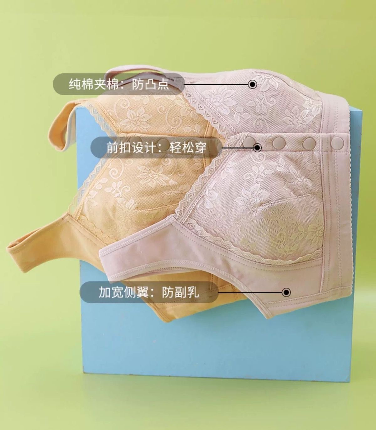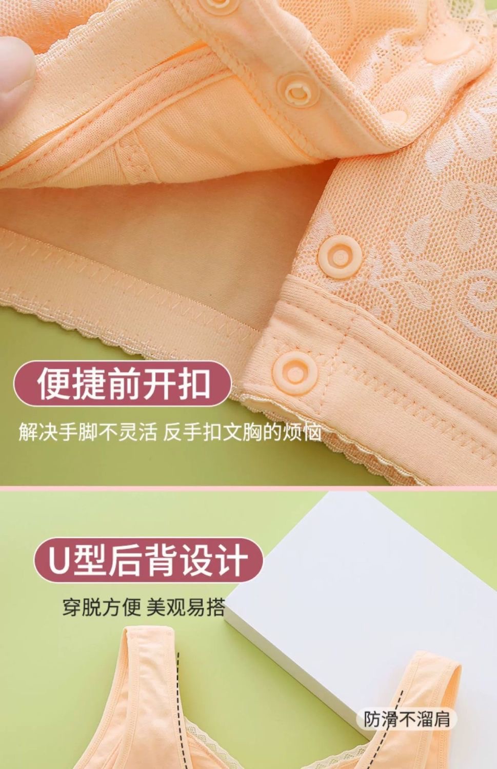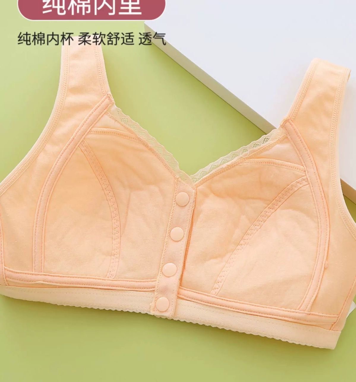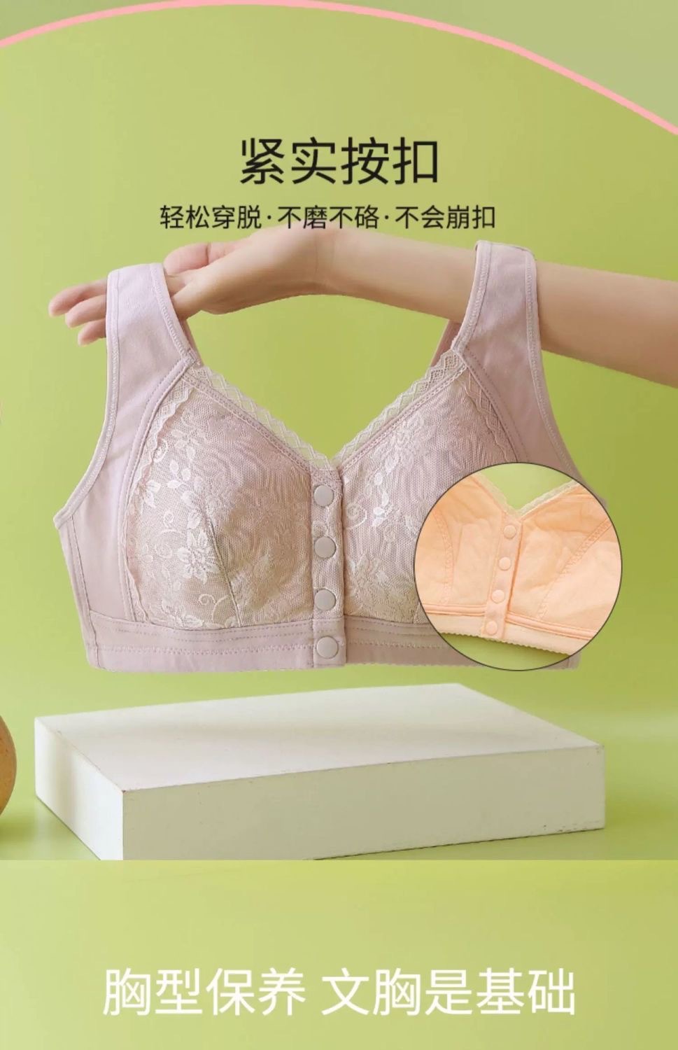 妈妈内衣女文胸棉质夏季中老年人无钢圈聚拢大码胸罩前扣背心透气