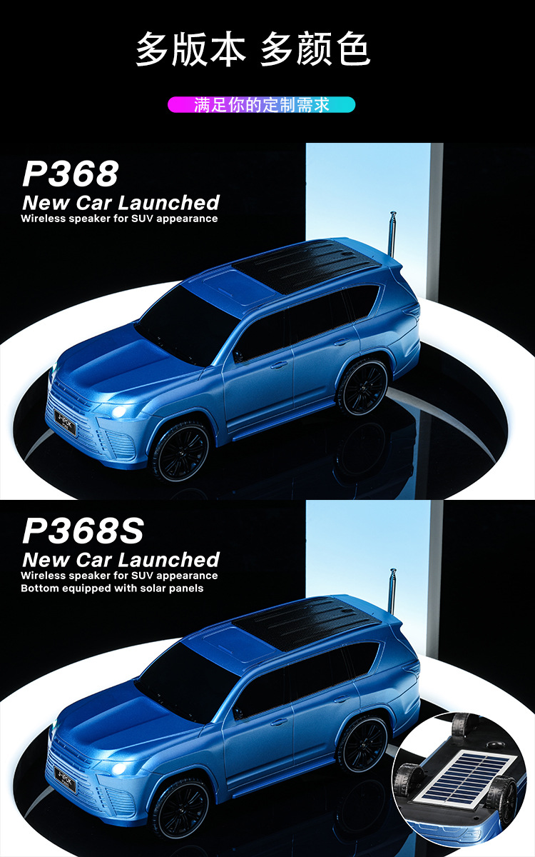 新款热销汽车模型蓝牙音箱P368高级礼品低音炮户外天线收音机插卡