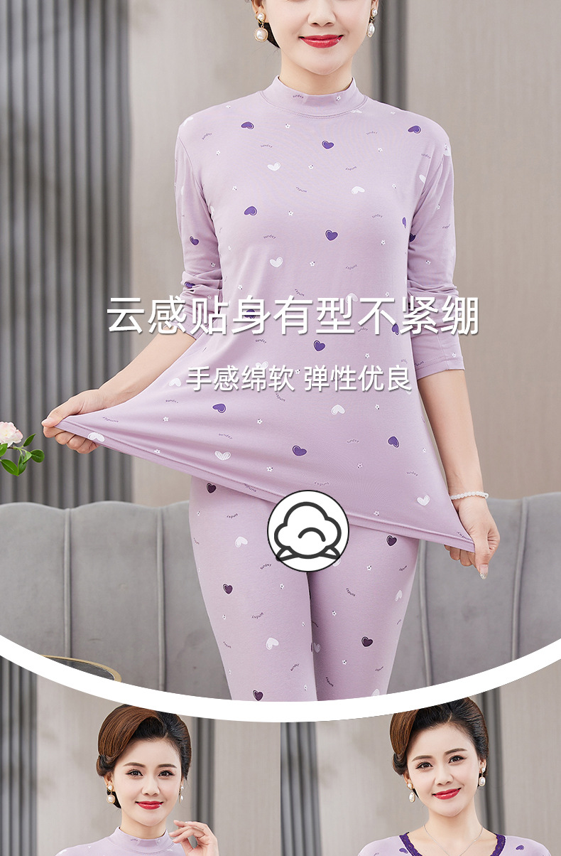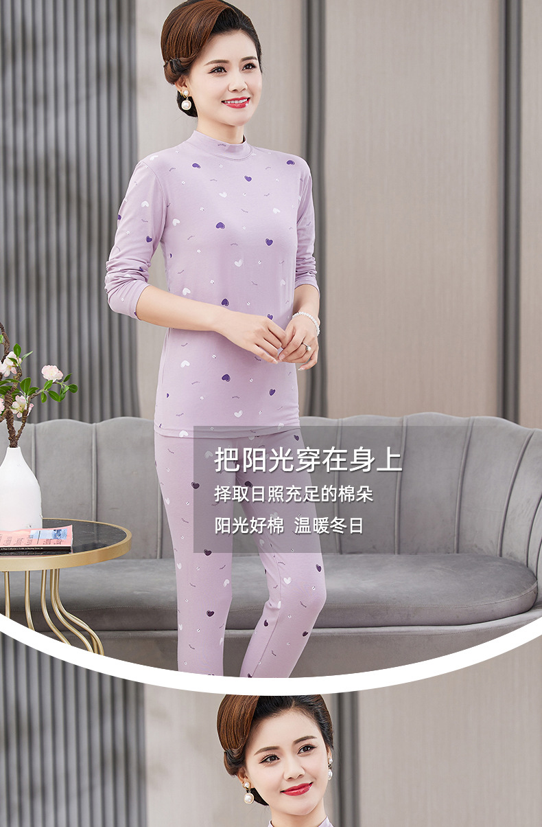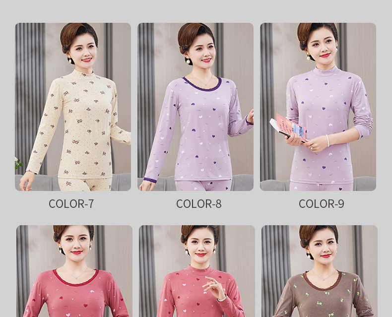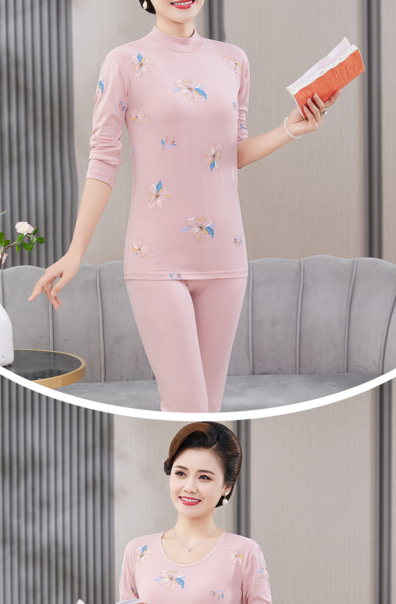 中老年女士纯棉秋衣秋裤妈妈打底保暖内衣套装老人大码全棉毛衫女