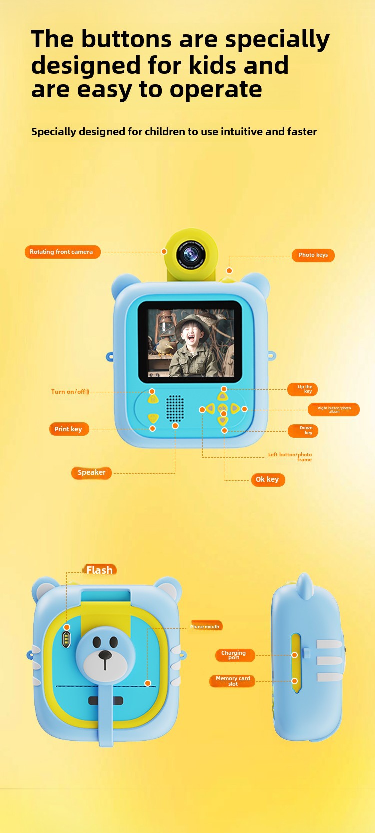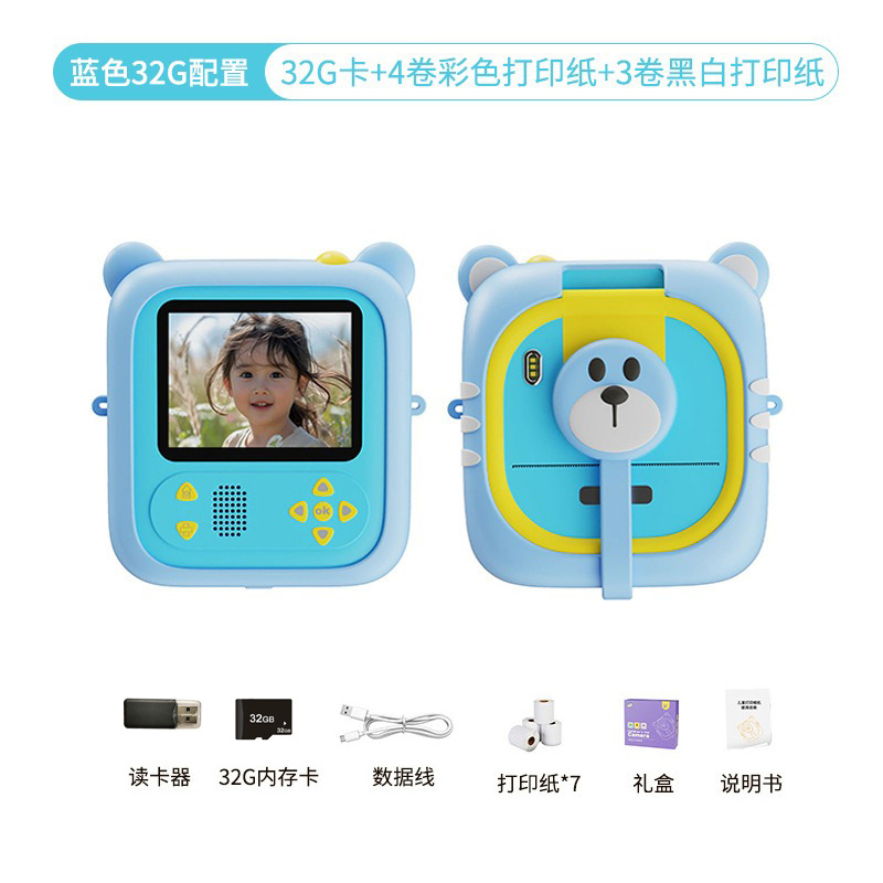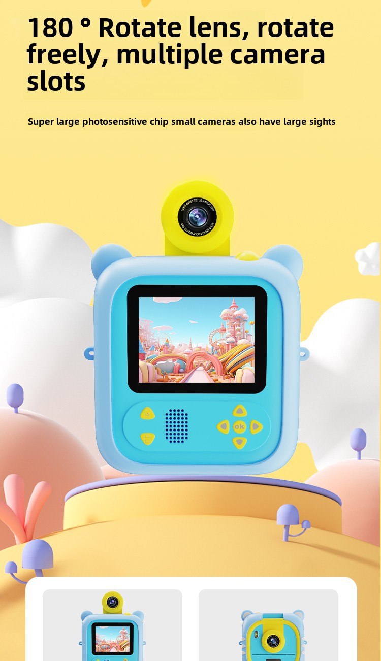 新品跨境数码翻转拍立得2.4寸高清双摄儿童相机拍照打印一体礼物