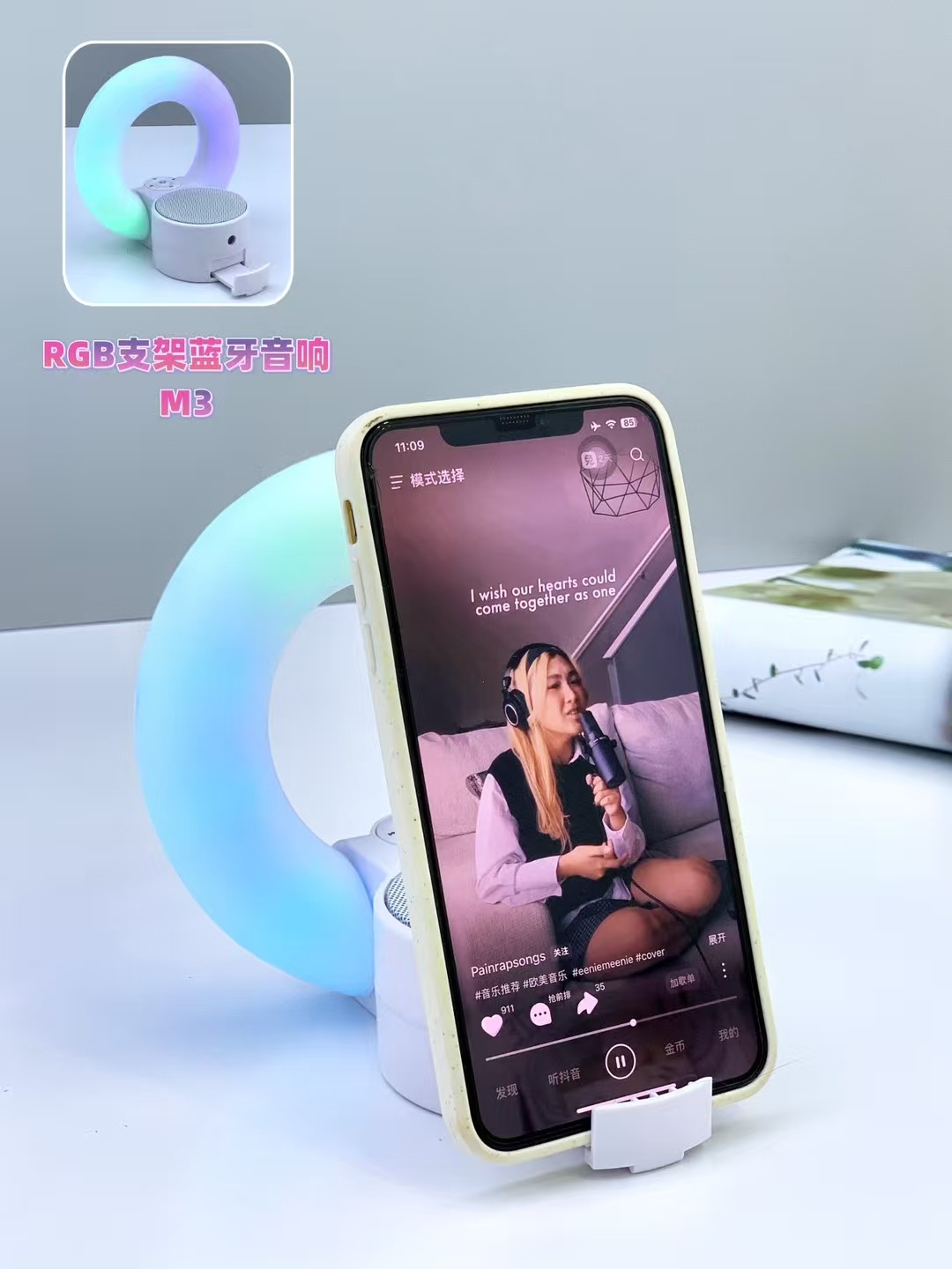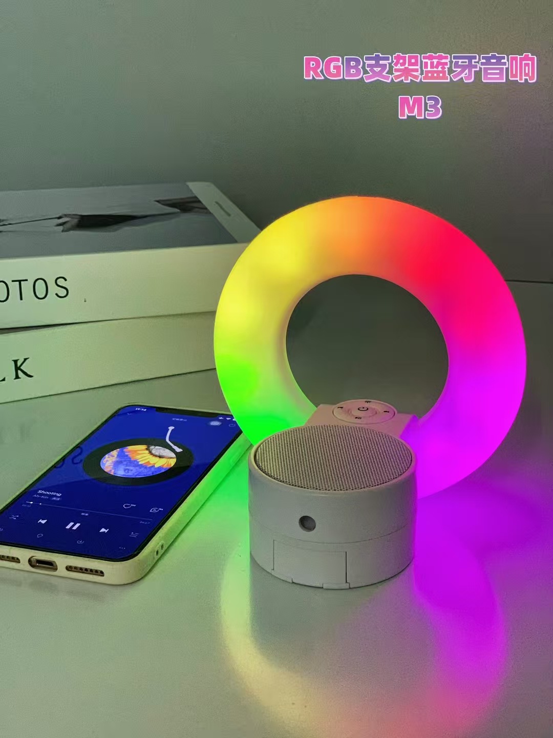 新品M3热卖3合一多功能蓝牙音响RGB补光灯手机支架便捷蓝牙小音箱