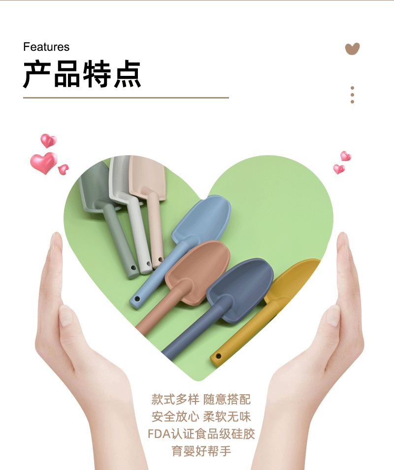 铲子玩沙子的工具 挖沙铲 短款沙铲 儿童沙滩玩具 海边套装硅胶