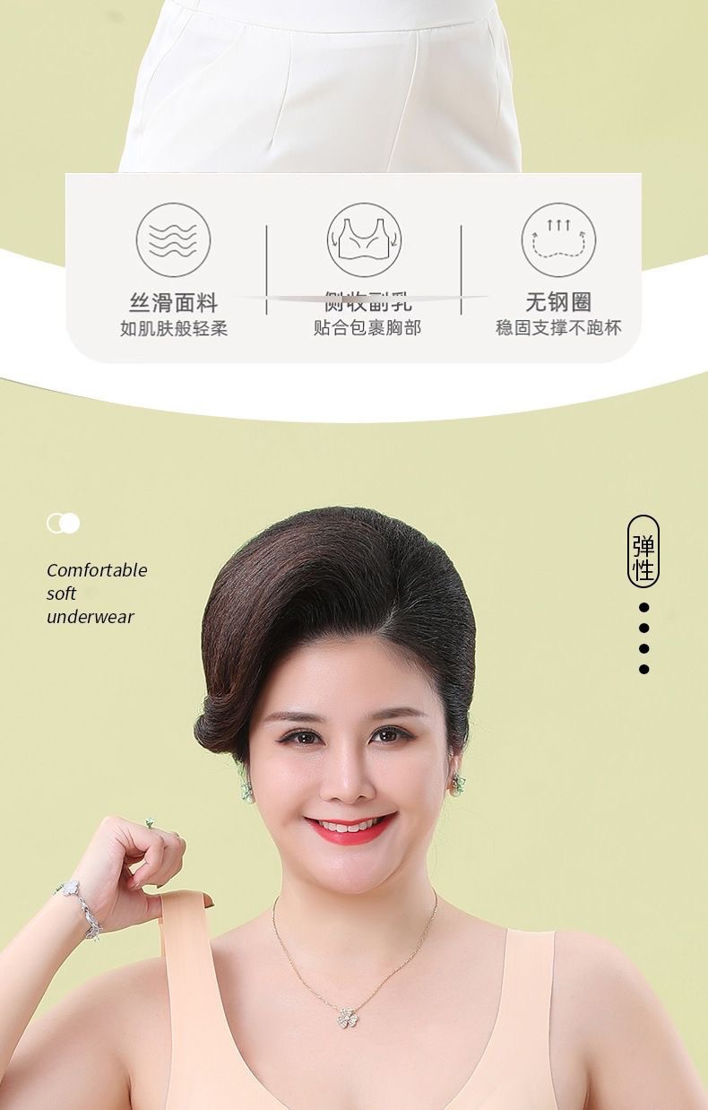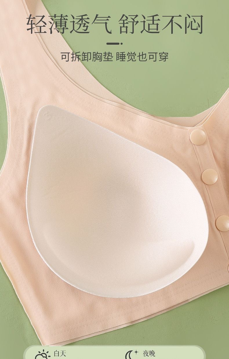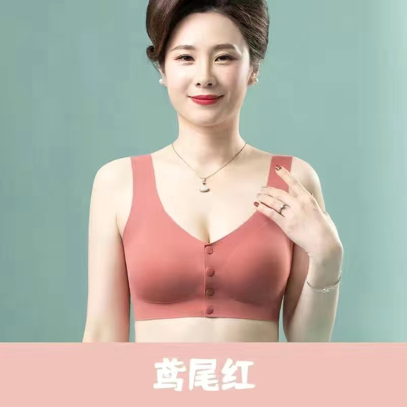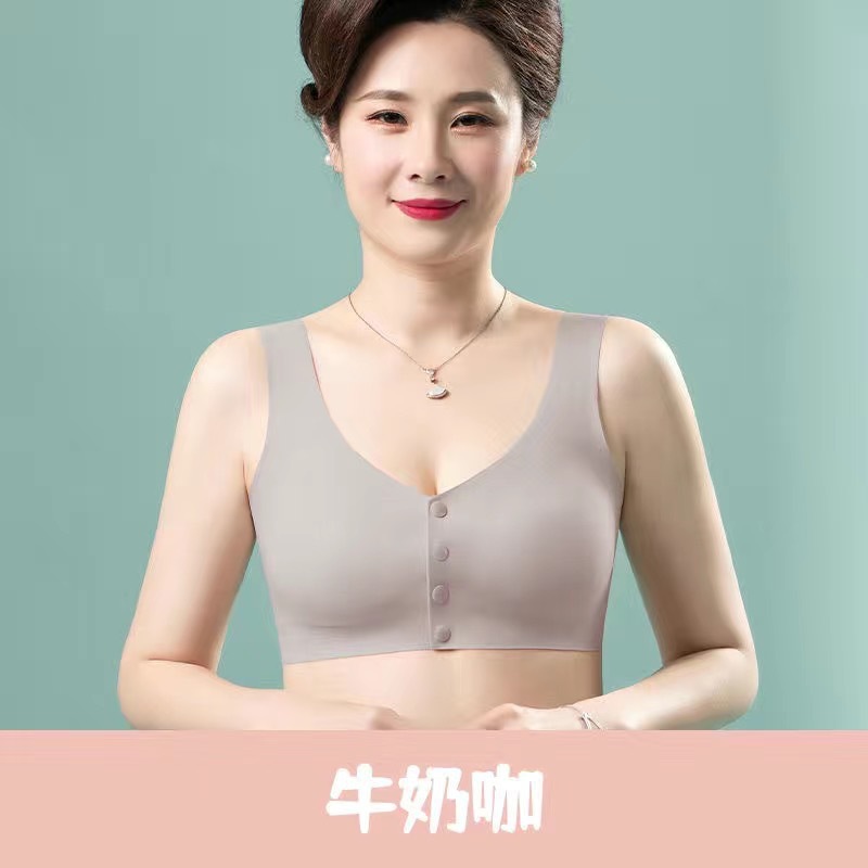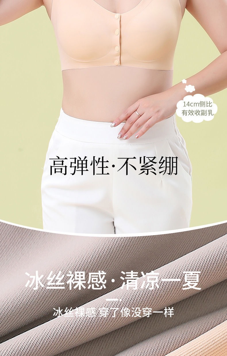 妈妈内衣女夏季薄款背心式前扣文胸无钢圈胸罩中老年人无痕大码棉