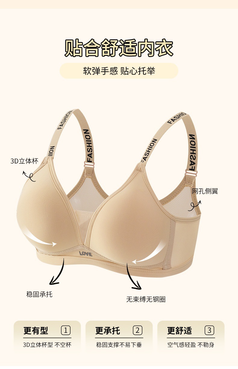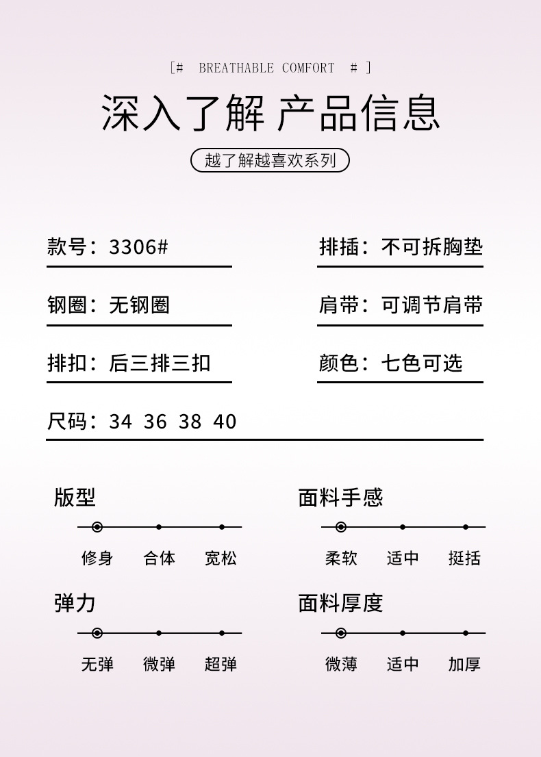 彩仙儿3306无钢圈薄棉三排扣文胸可调节肩带字母滴胶工艺舒适内衣