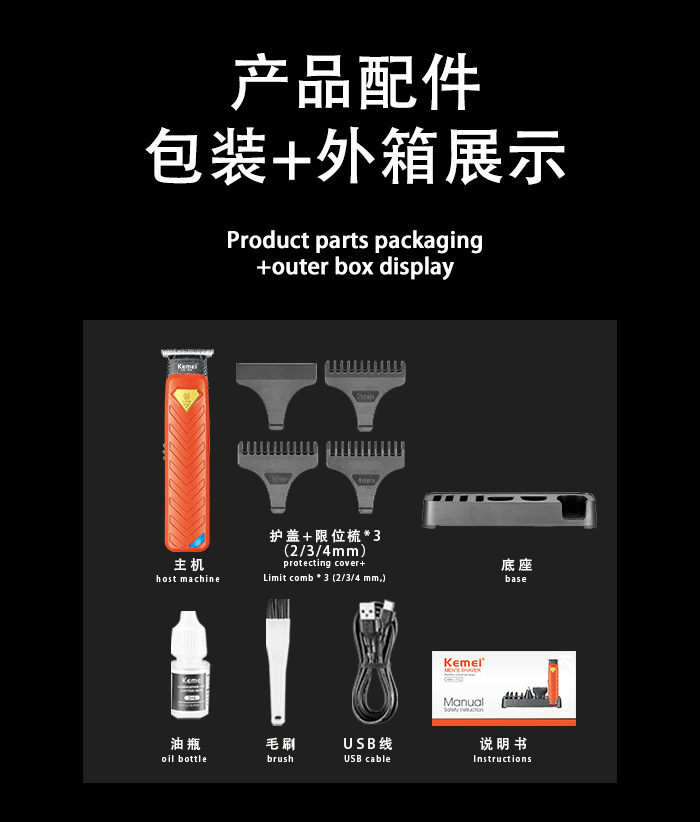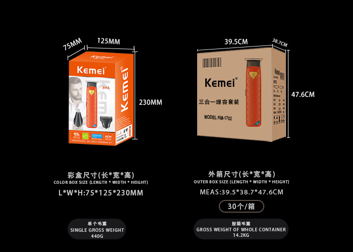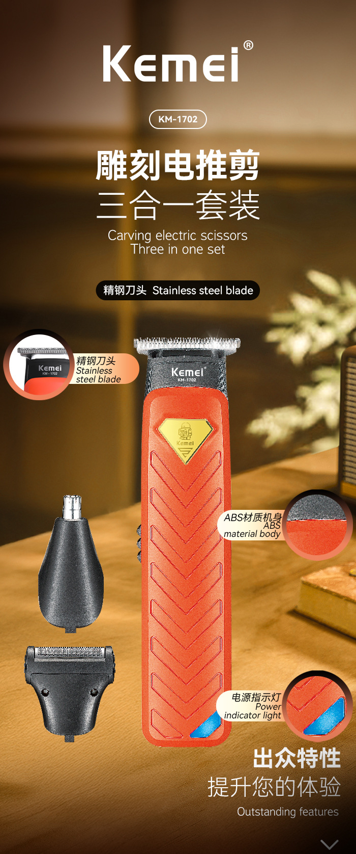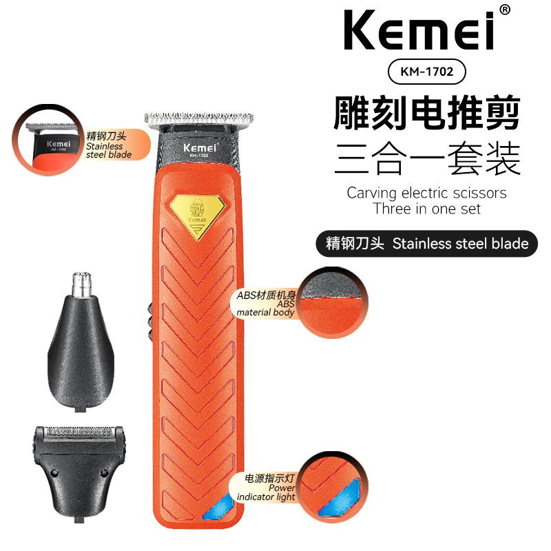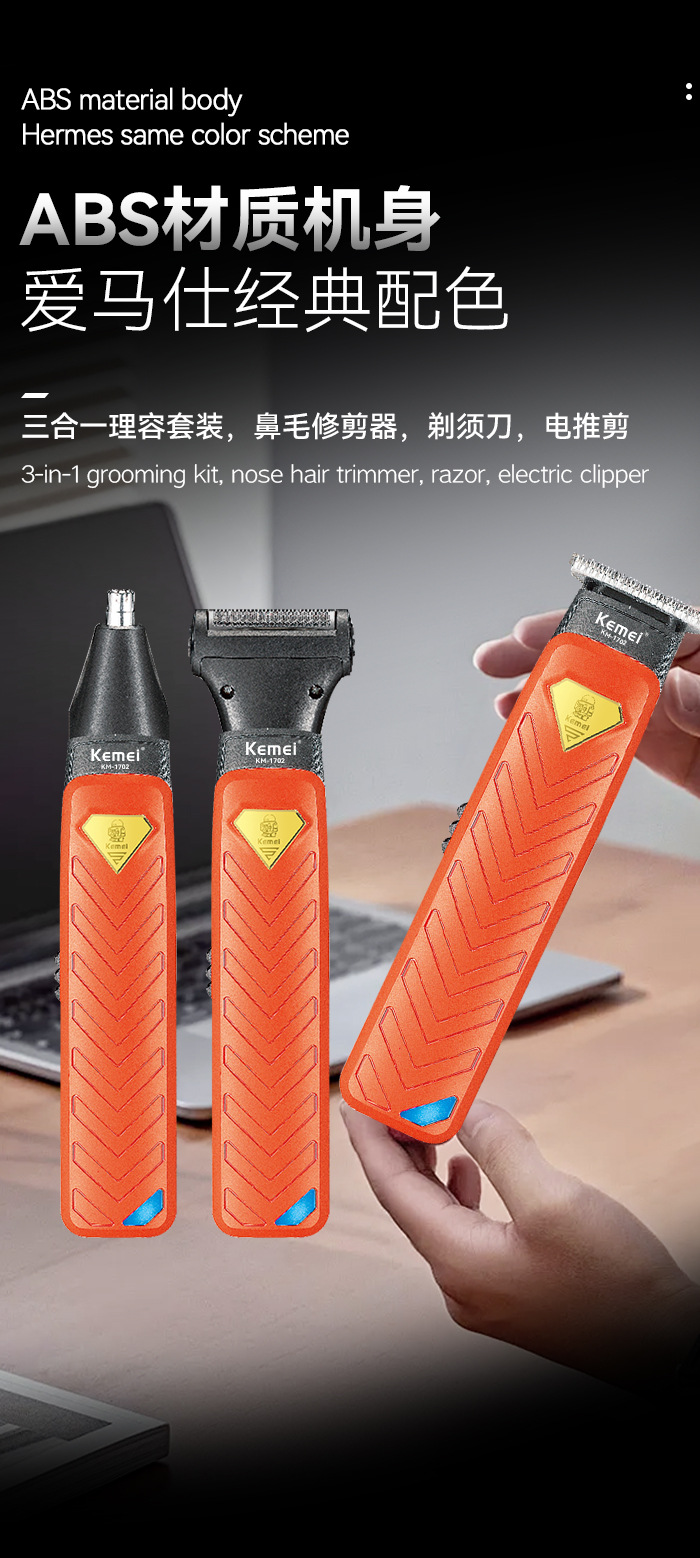 跨境多功能电推剪 科美三合一电动理发器可替换剃须刀鼻毛剪刀头