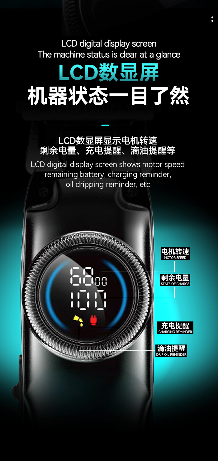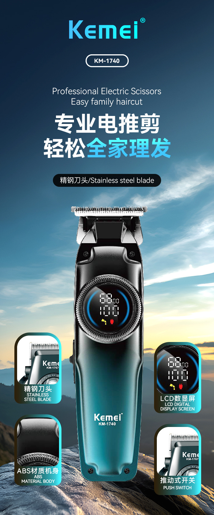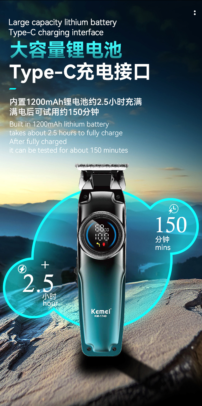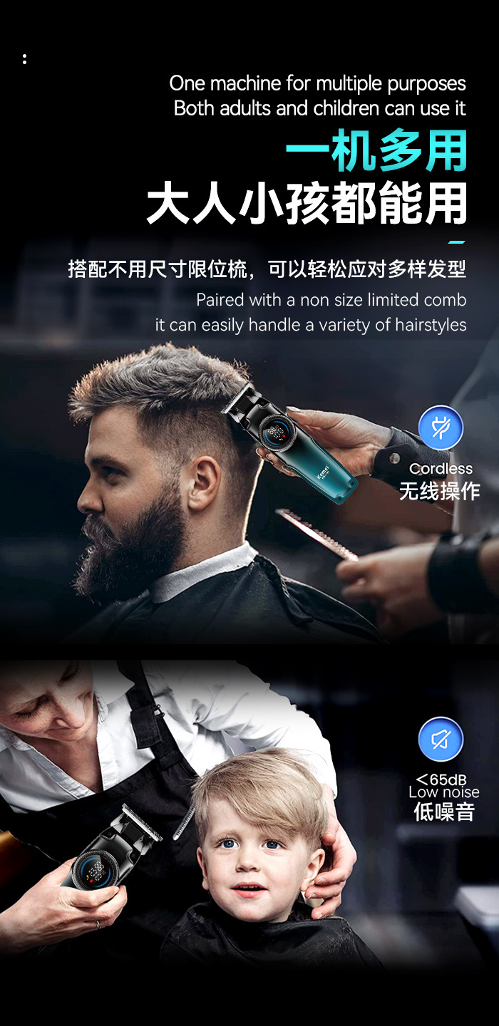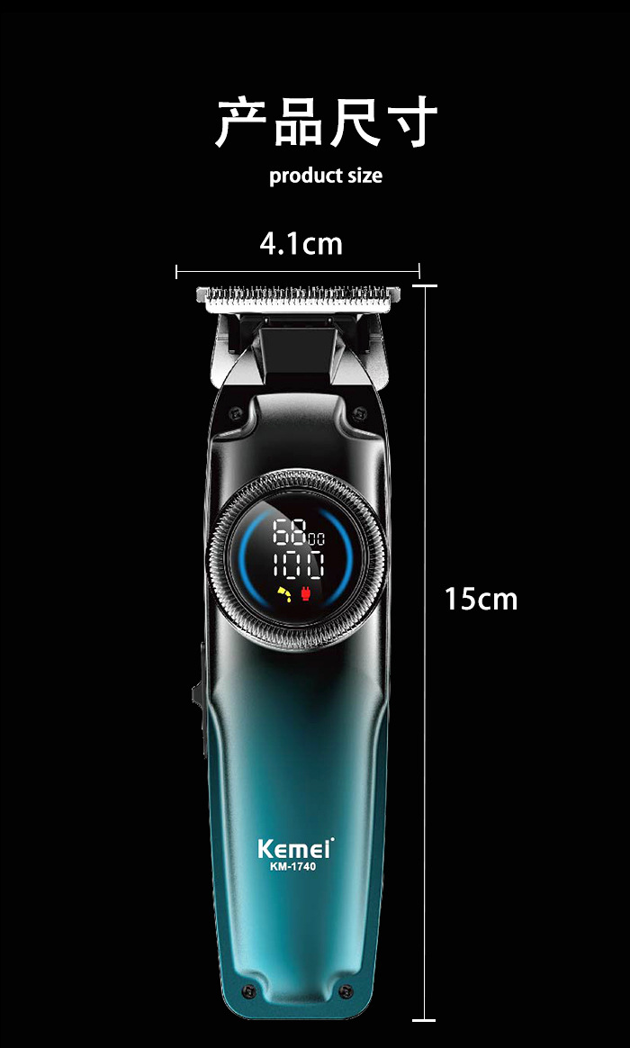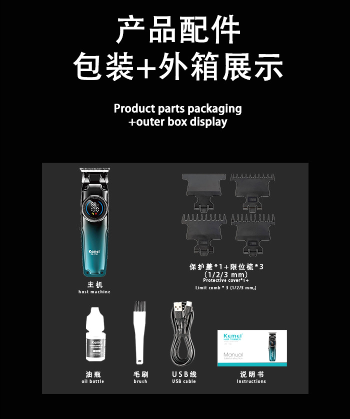 跨境专业科美电推剪 家用智能LCD数显理发器通用USB快充雕刻推子