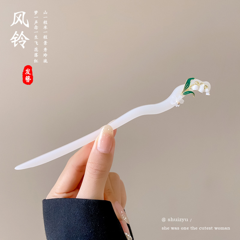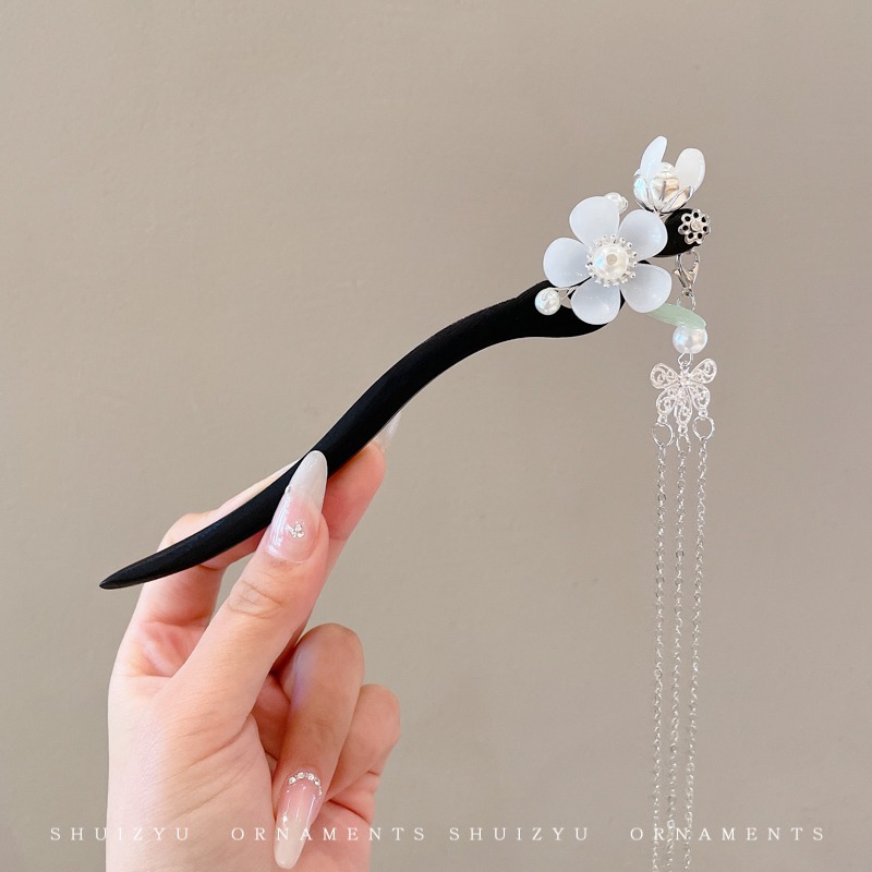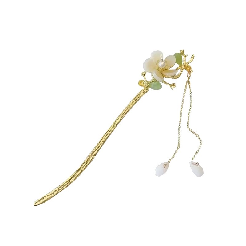 高级感玉兰花发簪头饰女新中式步摇流苏盘发簪子古风汉服旗袍发饰