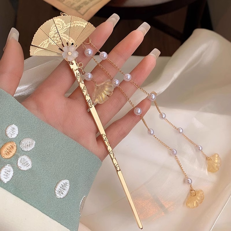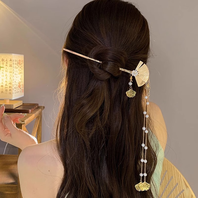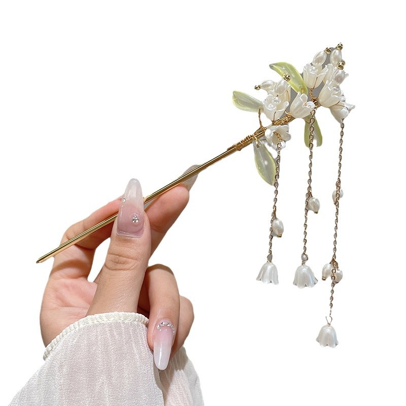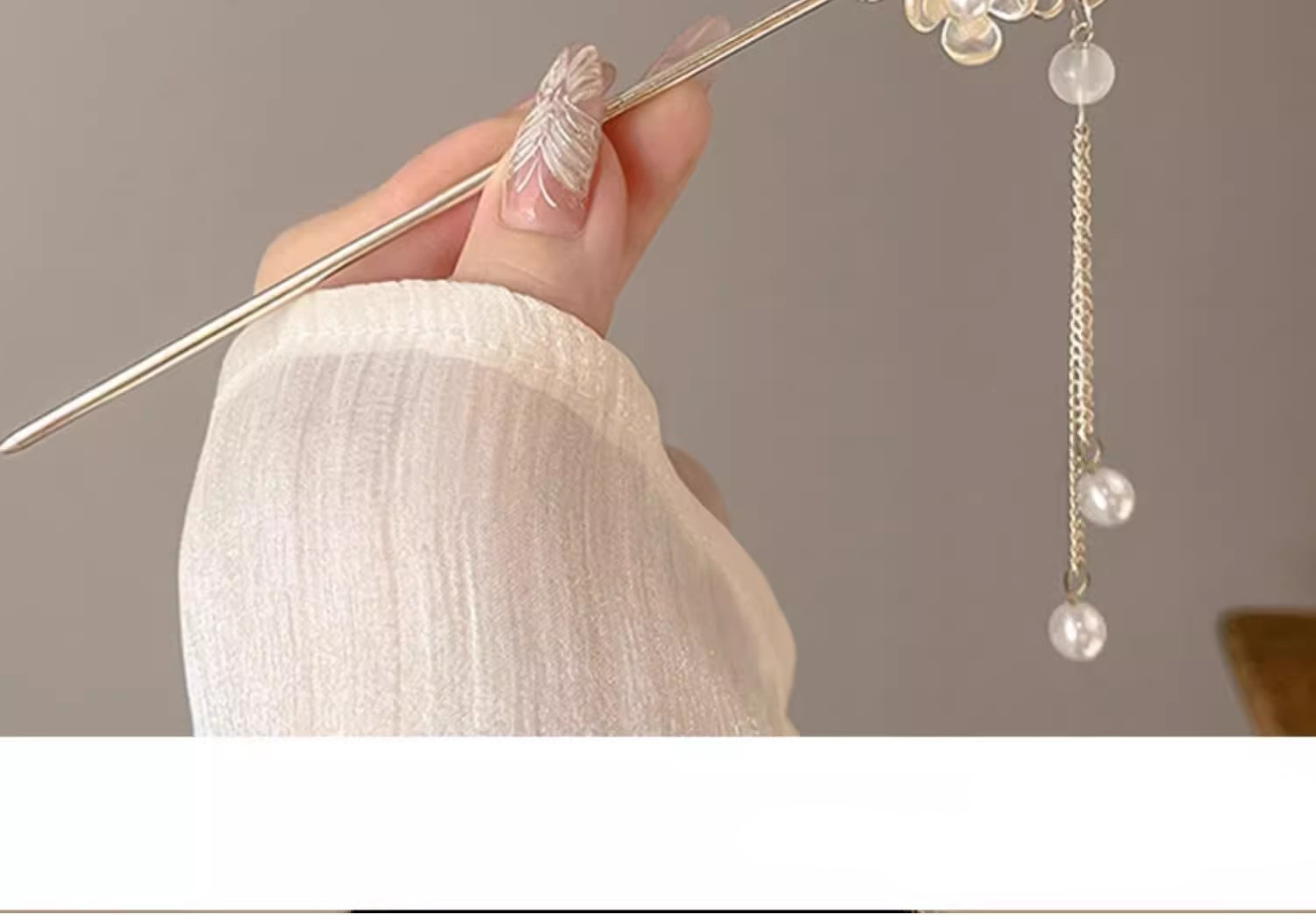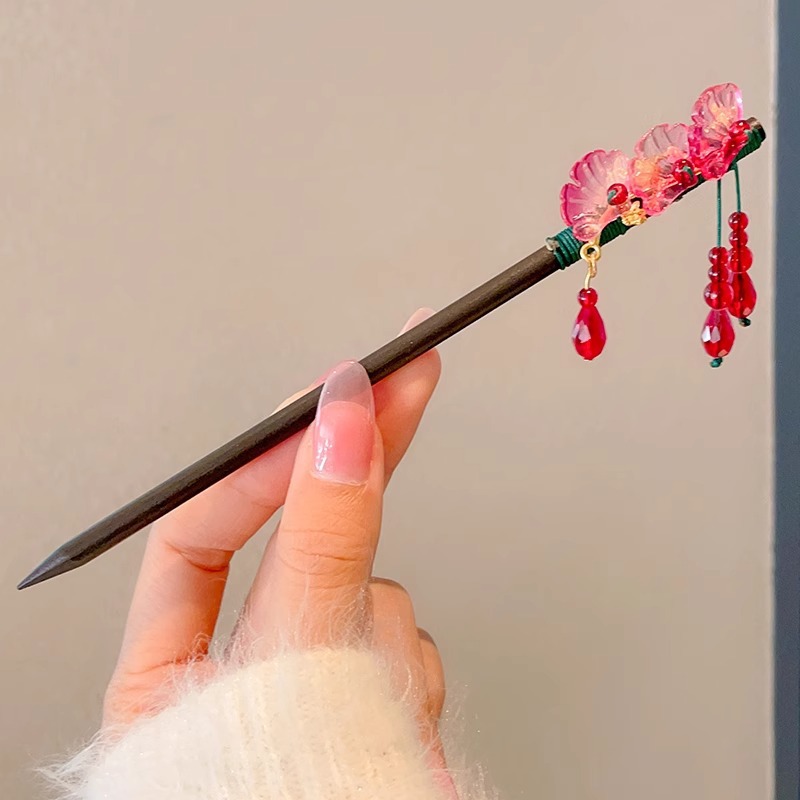 新中式流苏步摇发簪女高级感红色古风簪子马面裙花朵流苏发钗头饰