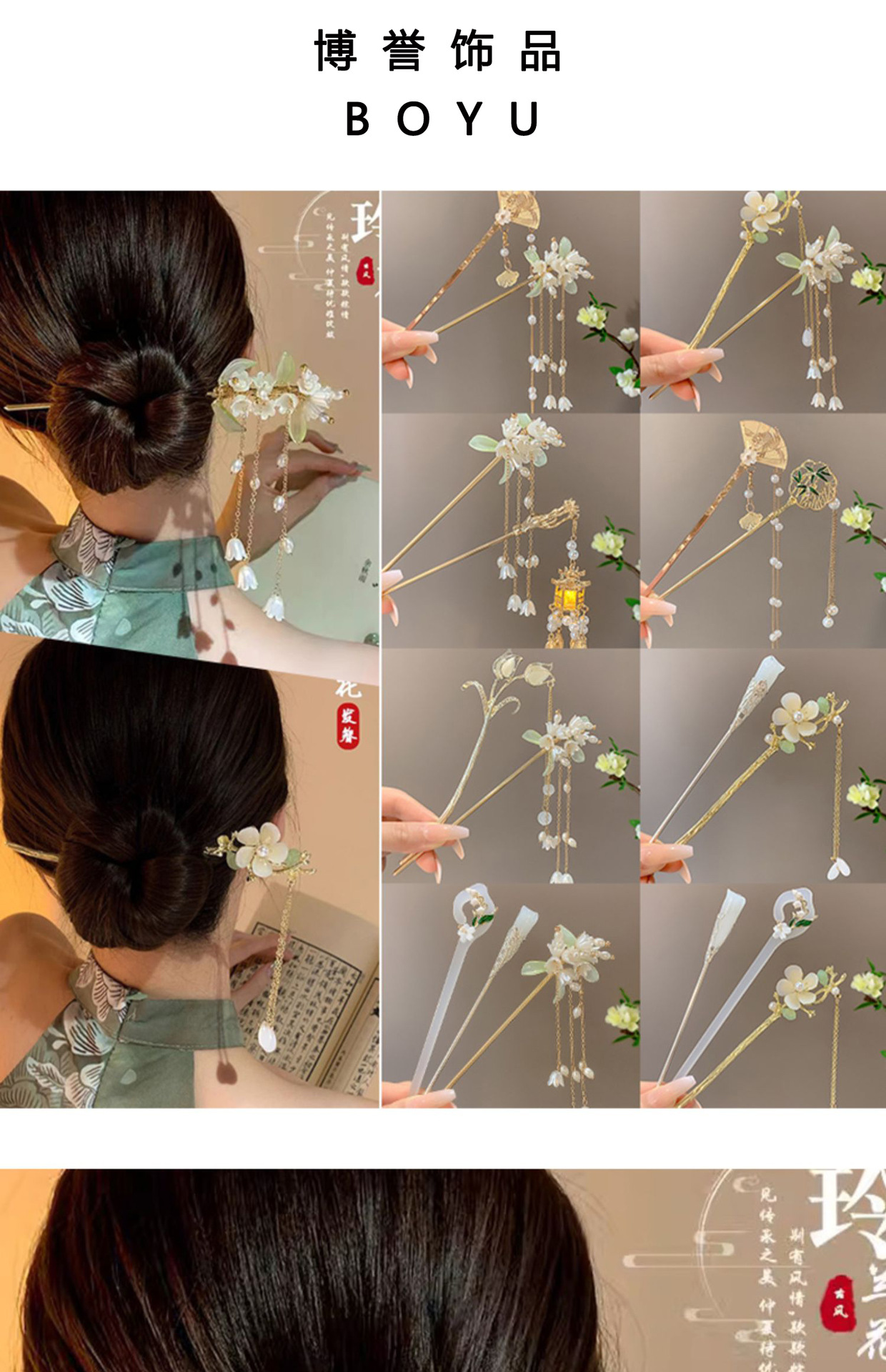 新中式流苏发簪女古风高级感步摇汉服发饰后脑勺发钗国风簪子头饰