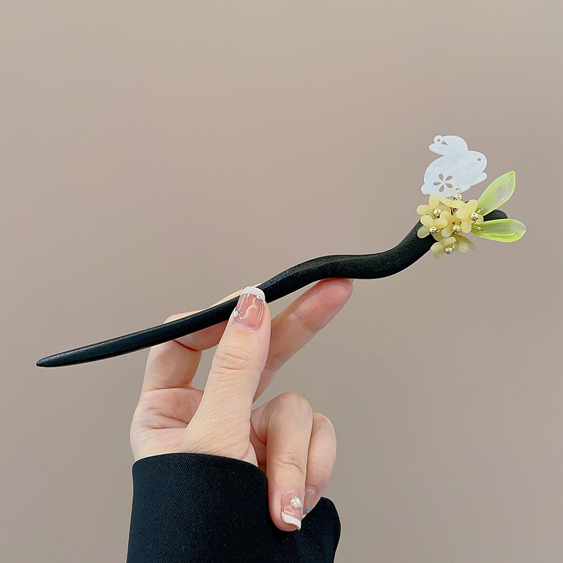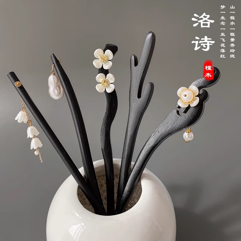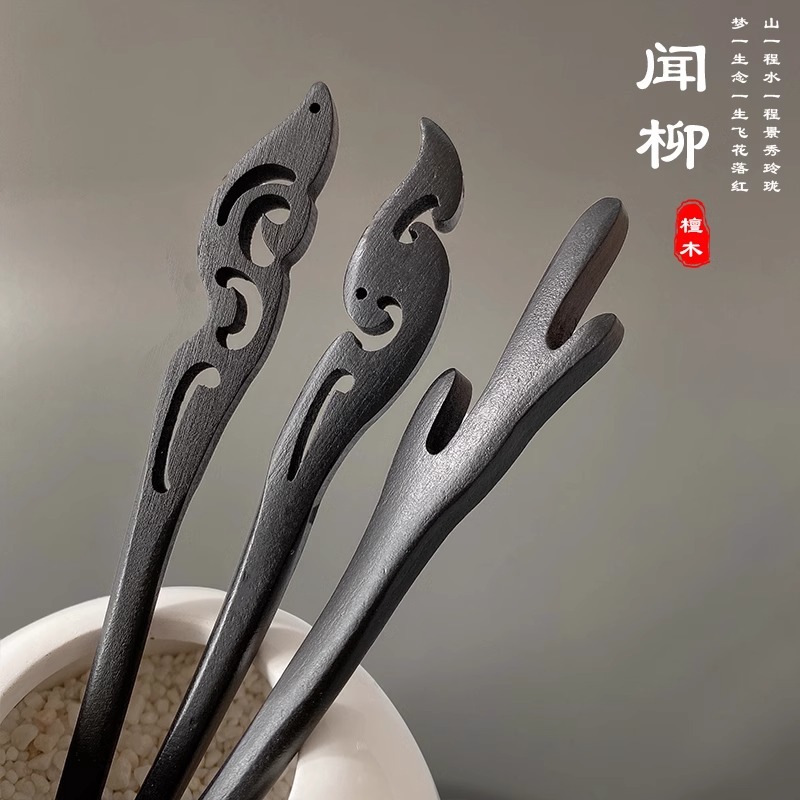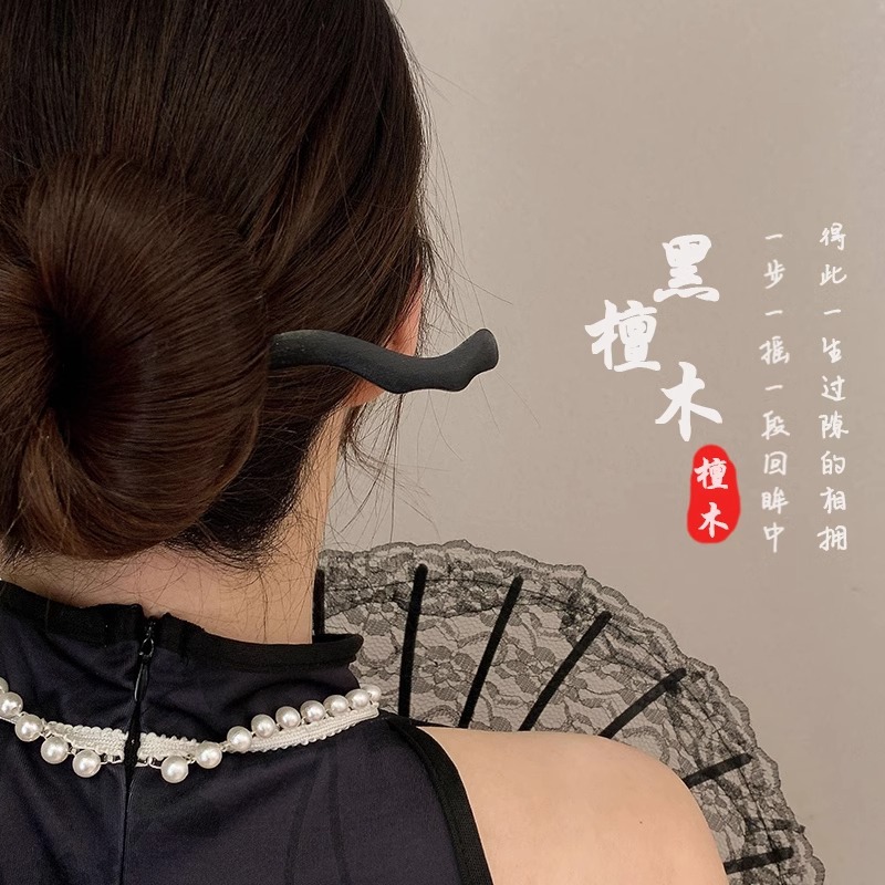 高级感黑檀木发簪女古风日常盘发簪子新中式发簪简约气质发钗头饰