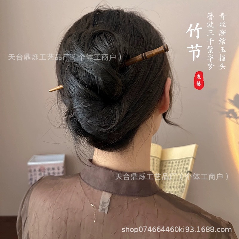 仿黑檀木发簪竹节新中式简约丸子头盘发簪子木质古风汉服发钗头饰