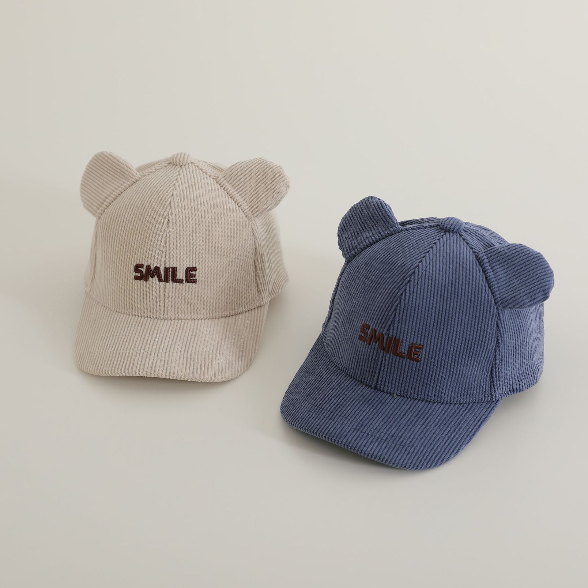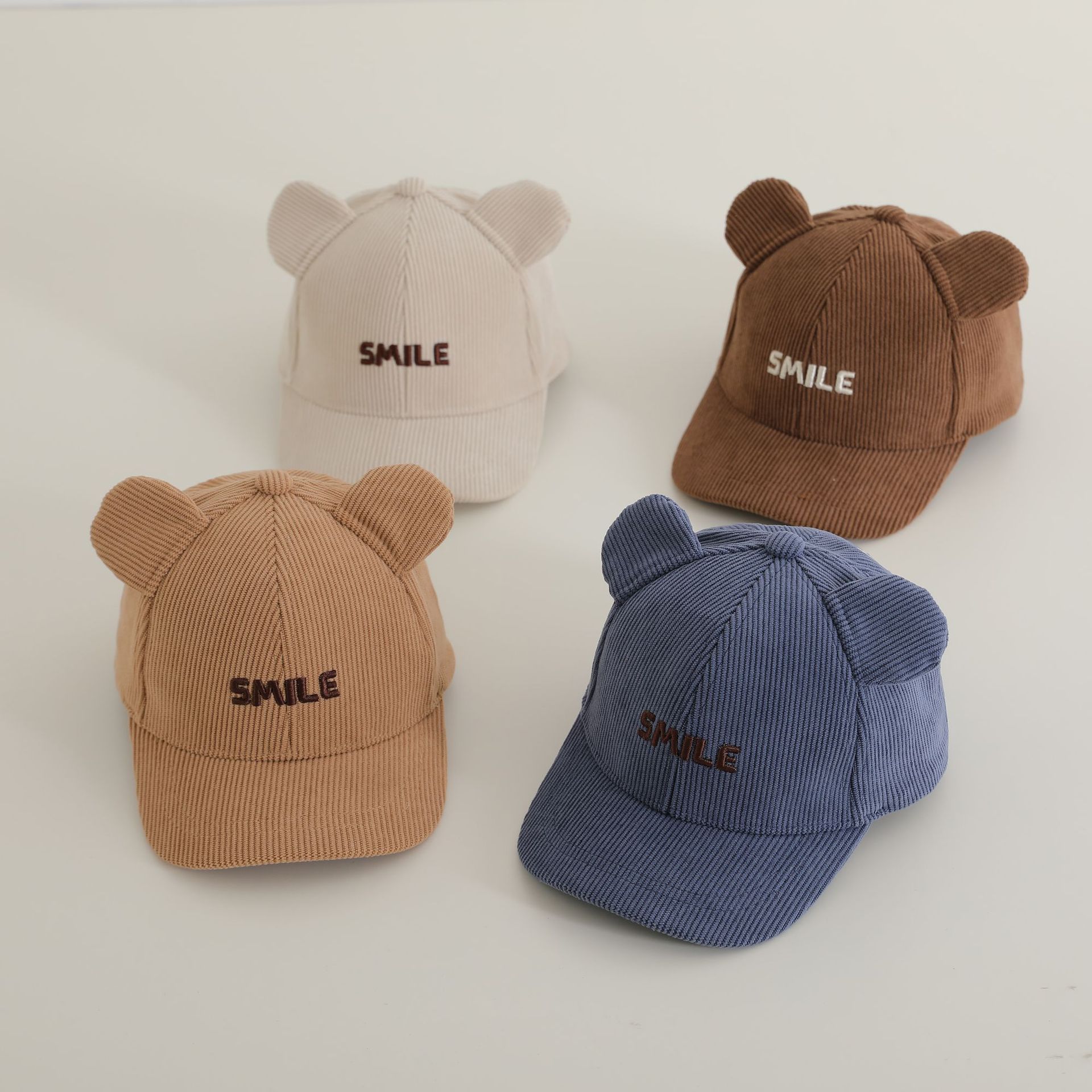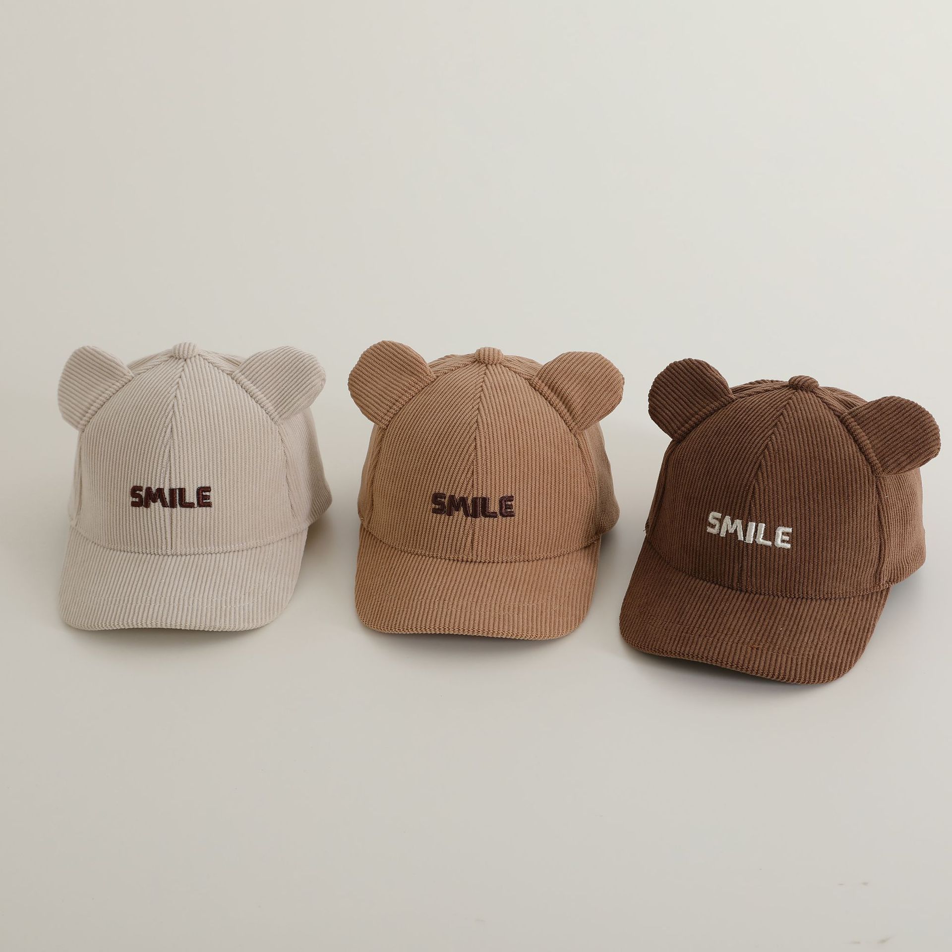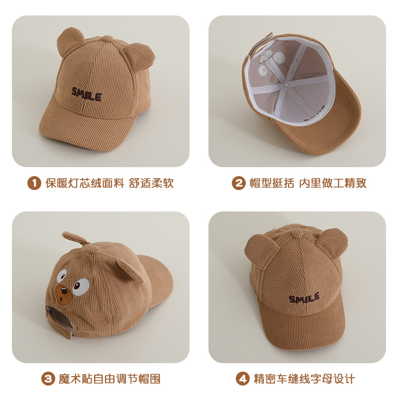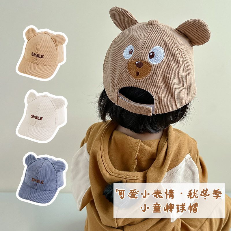 宝宝帽子秋新款复古灯芯绒鸭舌帽可爱表情男女儿童遮阳防晒棒X20