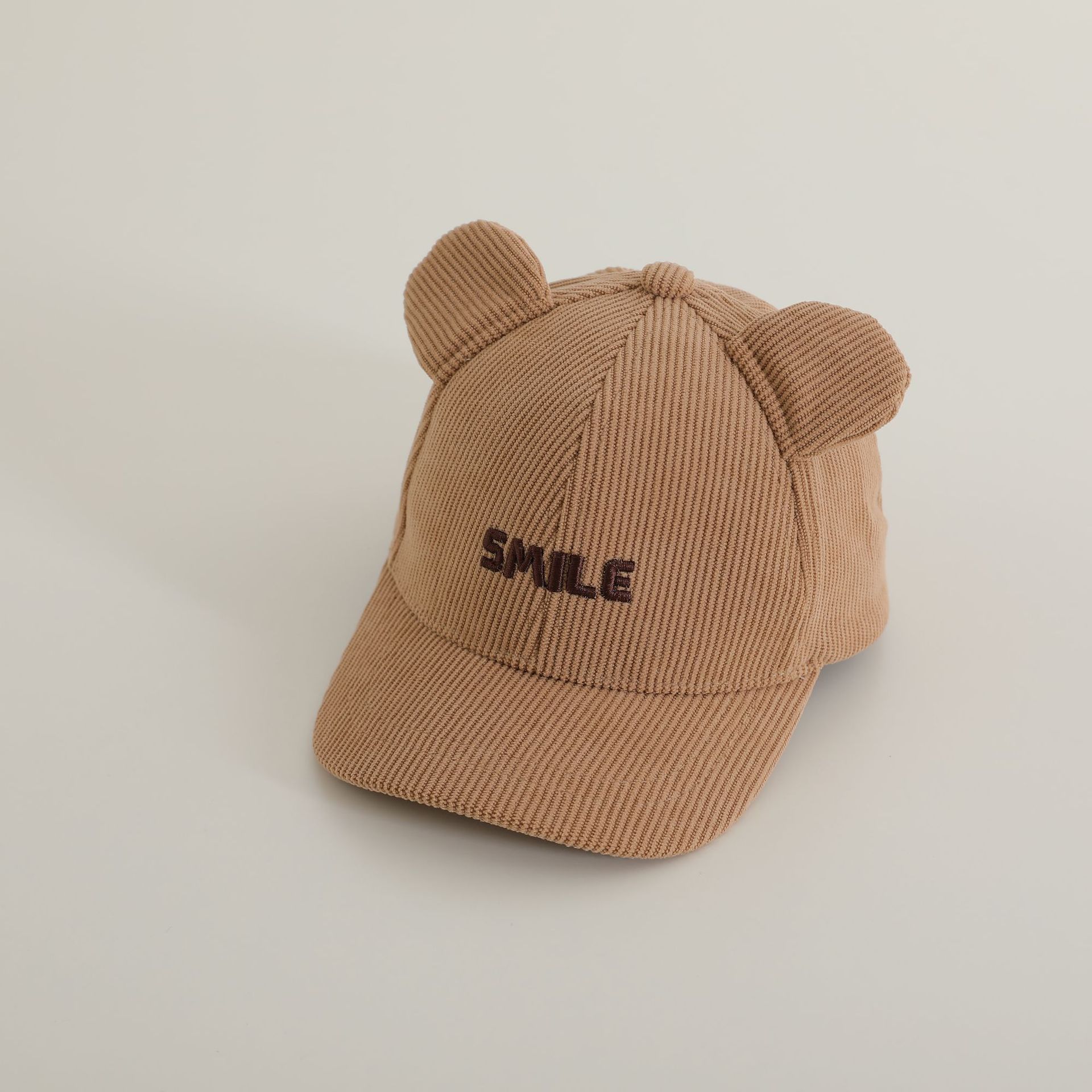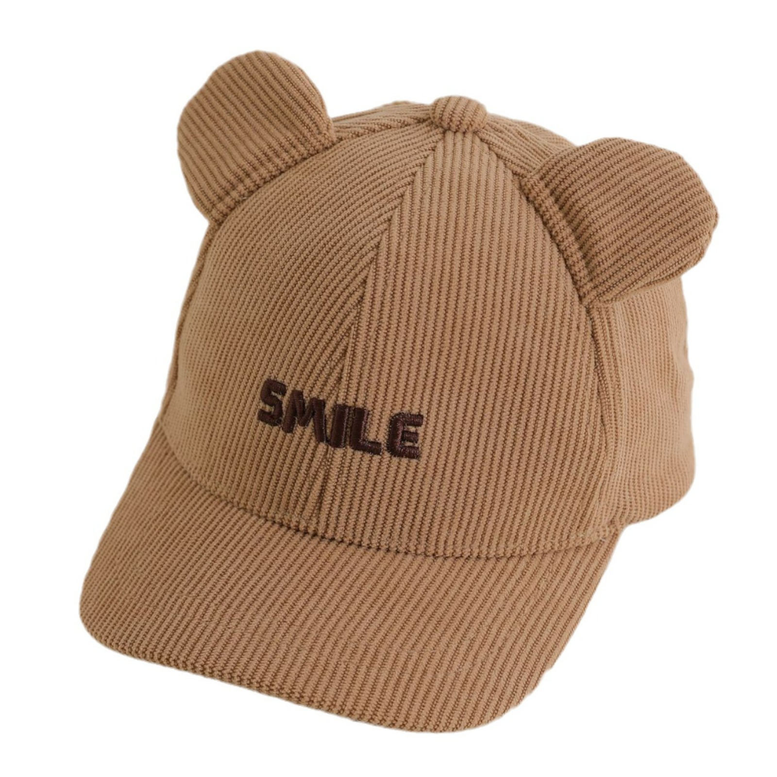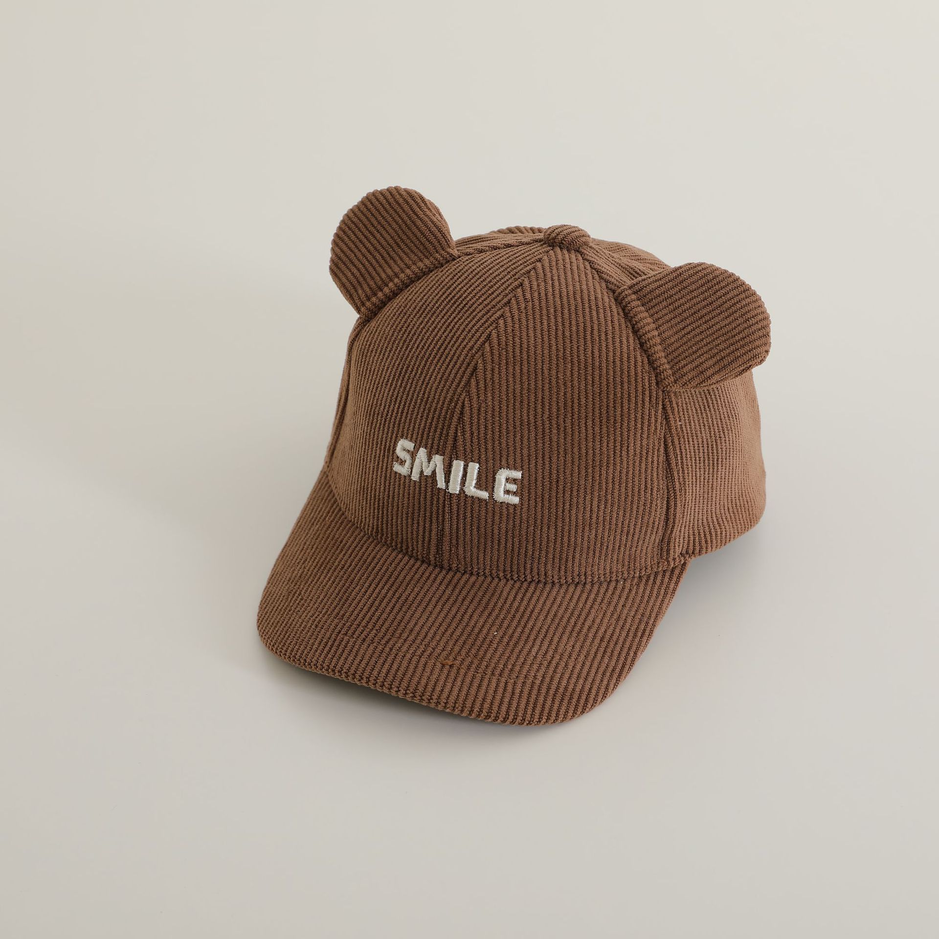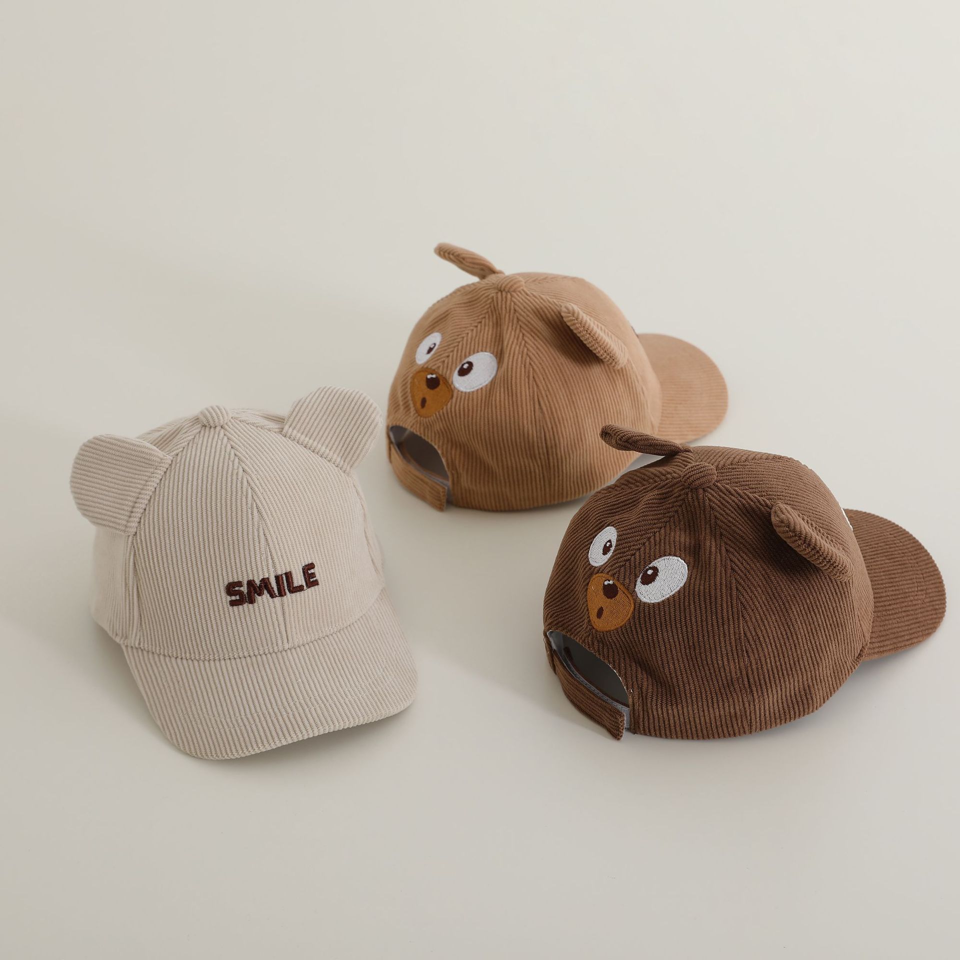 宝宝帽子秋新款复古灯芯绒鸭舌帽可爱表情男女儿童遮阳防晒棒X20