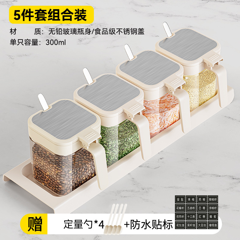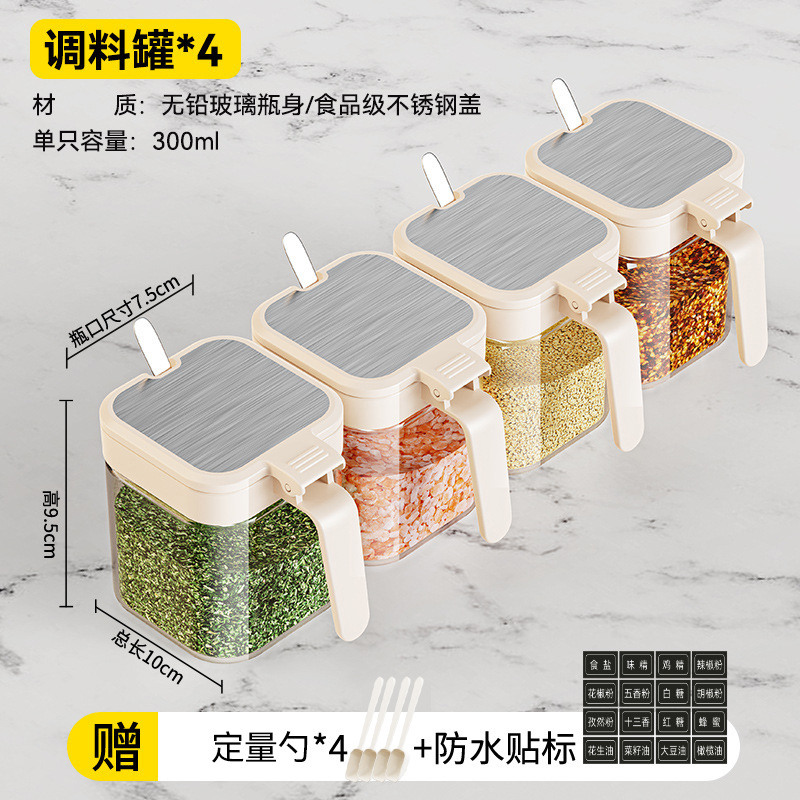 厂家玻璃调料罐调味盒带勺调料盒调味料瓶组合调味罐子收纳盒密封