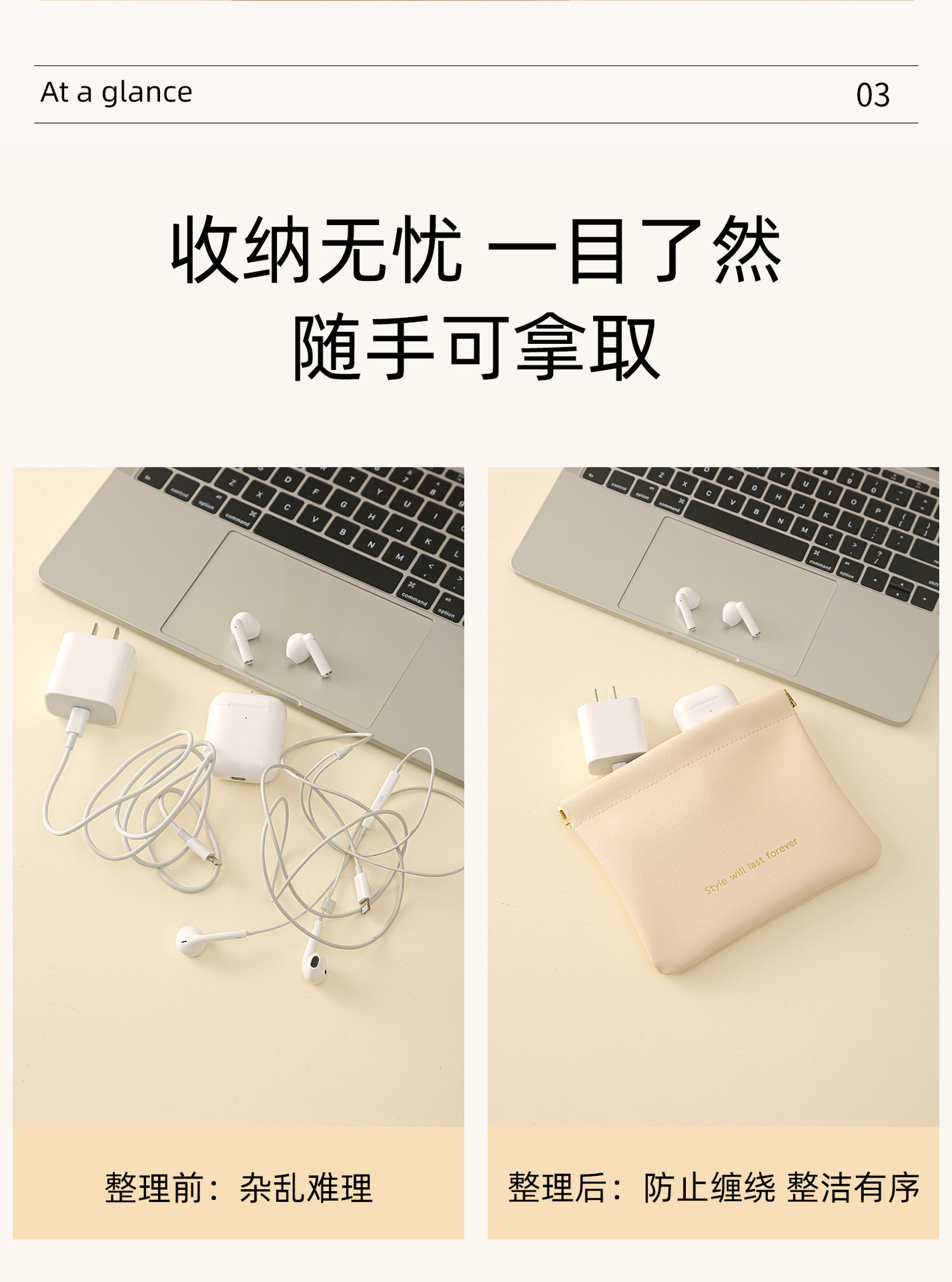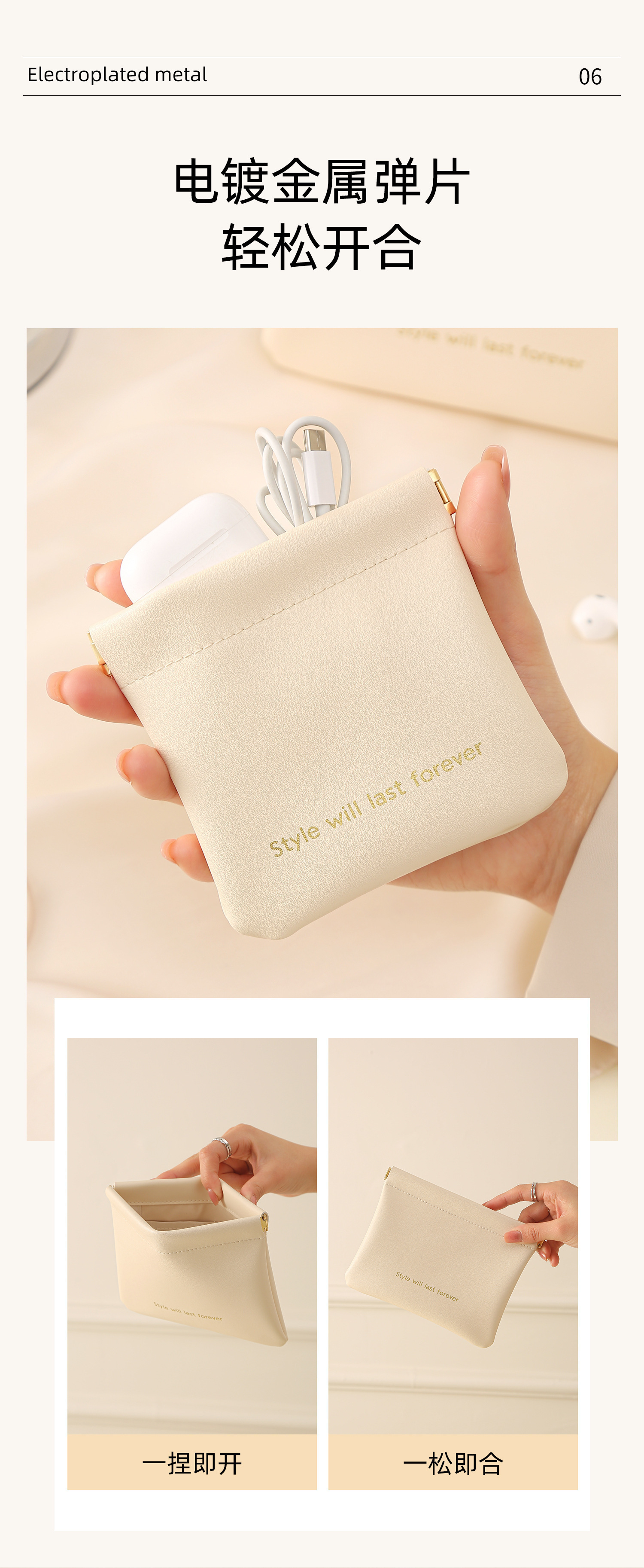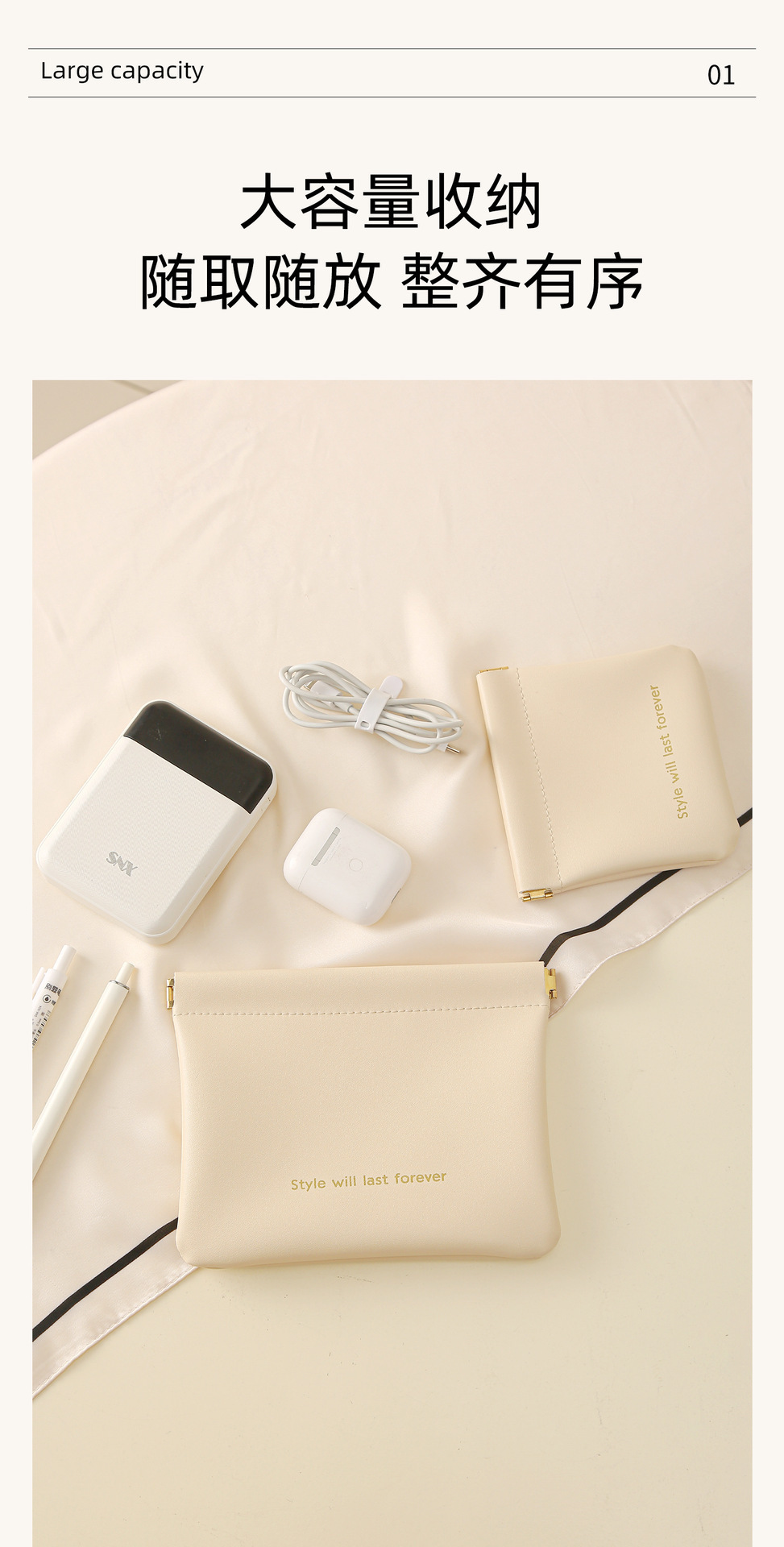 【2件套】大号自动闭合收纳包便携数据线分类袋充电器口红化妆包