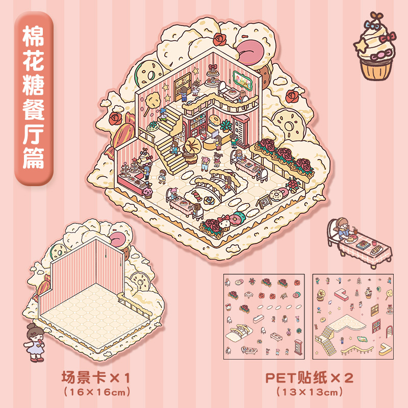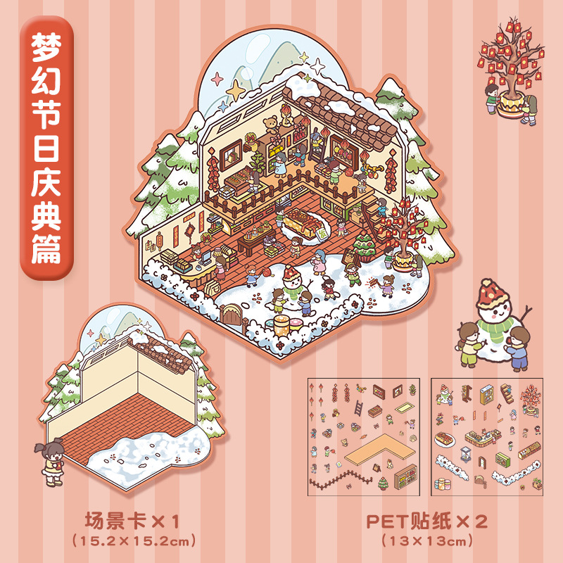 卡通解压造景贴纸创意微缩场景拼贴DIY造景拼贴3D立体手账贴画