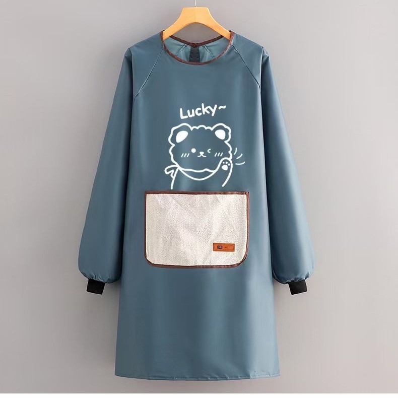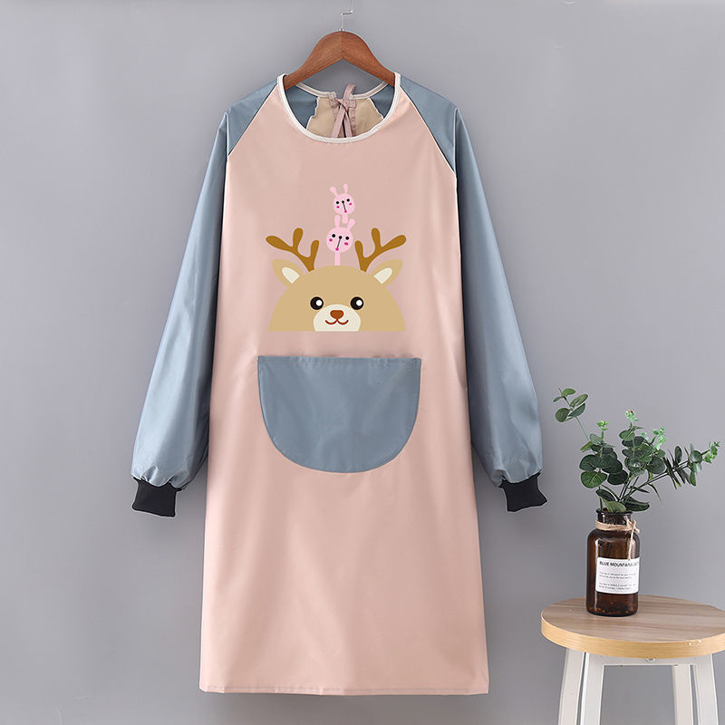 做饭餐饮罩衣加厚工作围裙防水围裙长袖围裙厨房家用卡通防油围腰