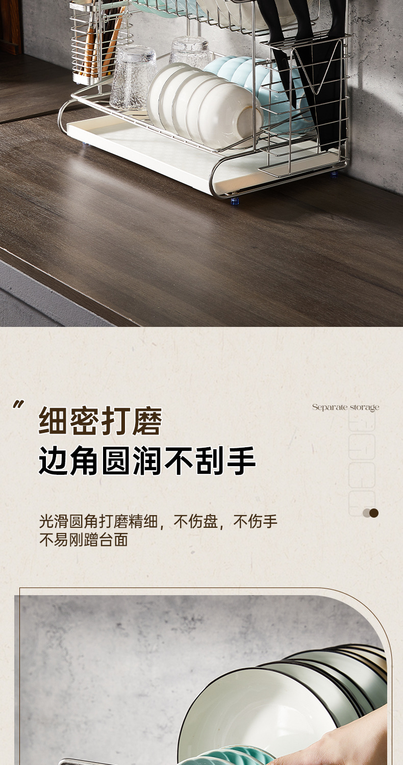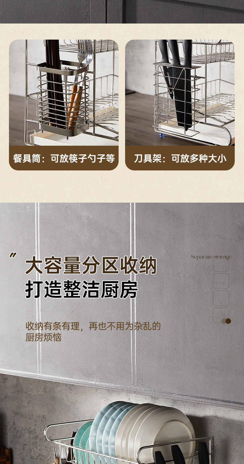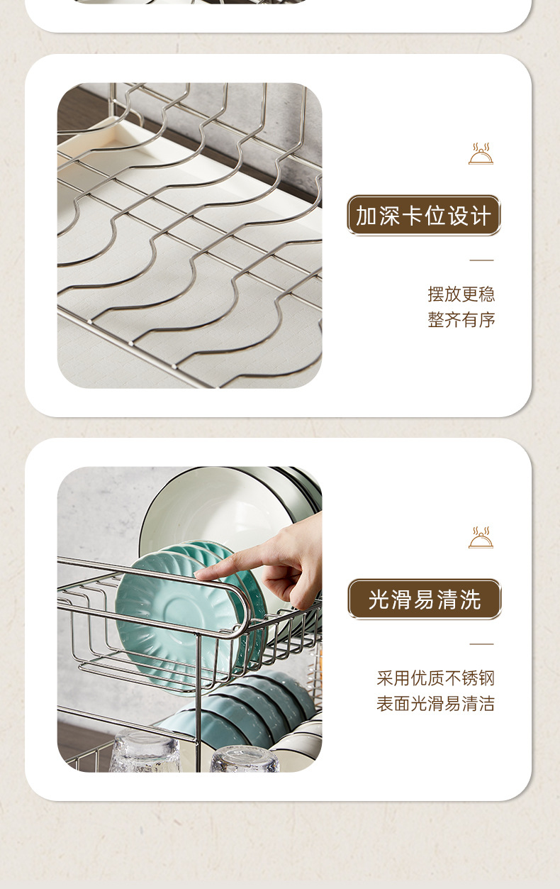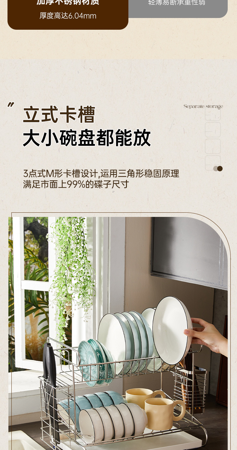 一体加固304不锈钢碗架双层沥水碗碟架厨房置物架收纳晾放碗盘架