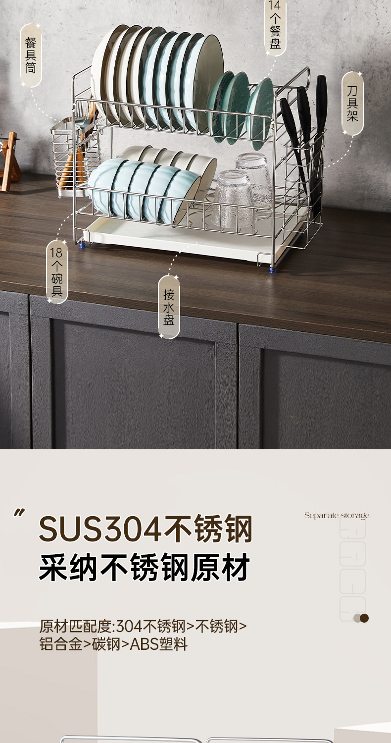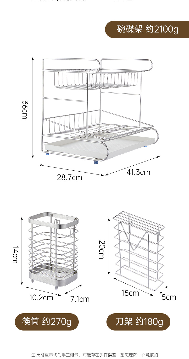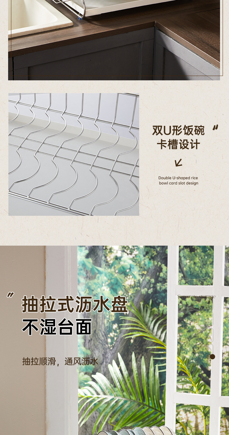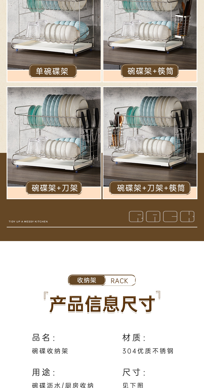 一体加固304不锈钢碗架双层沥水碗碟架厨房置物架收纳晾放碗盘架