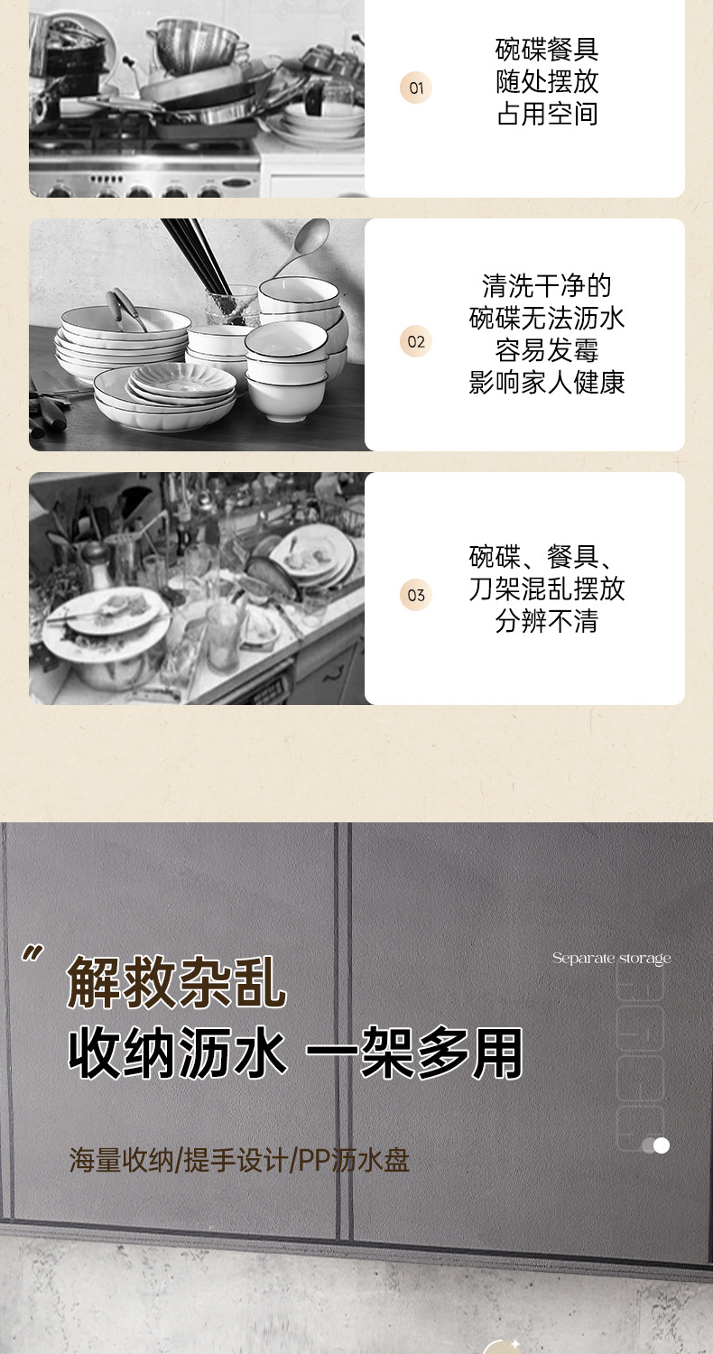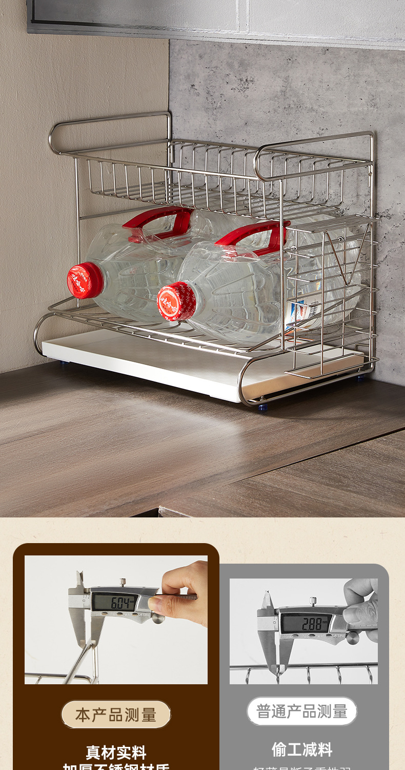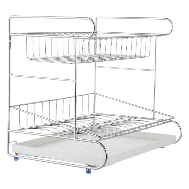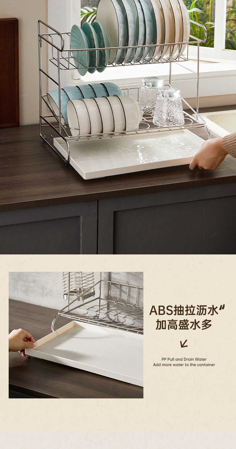 一体加固304不锈钢碗架双层沥水碗碟架厨房置物架收纳晾放碗盘架