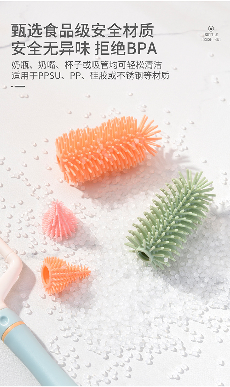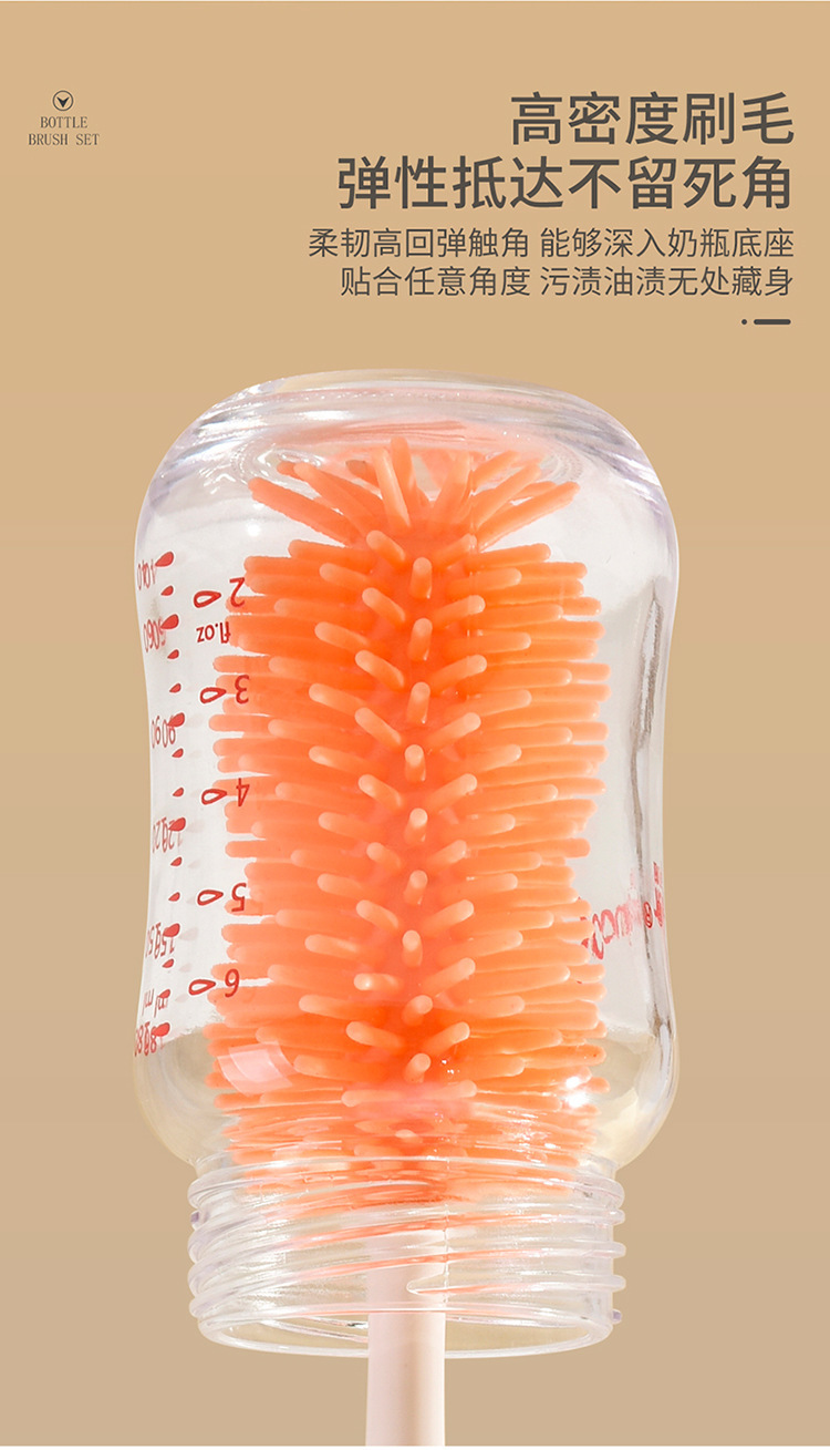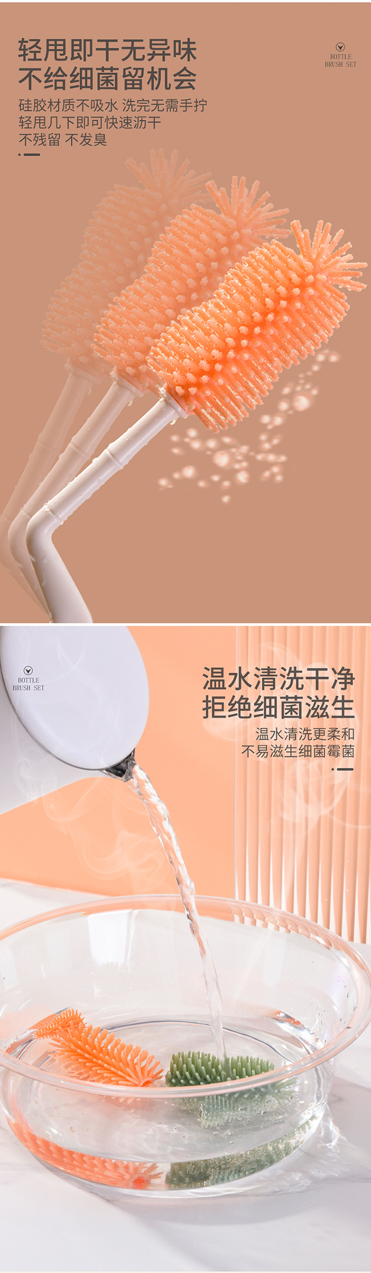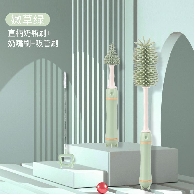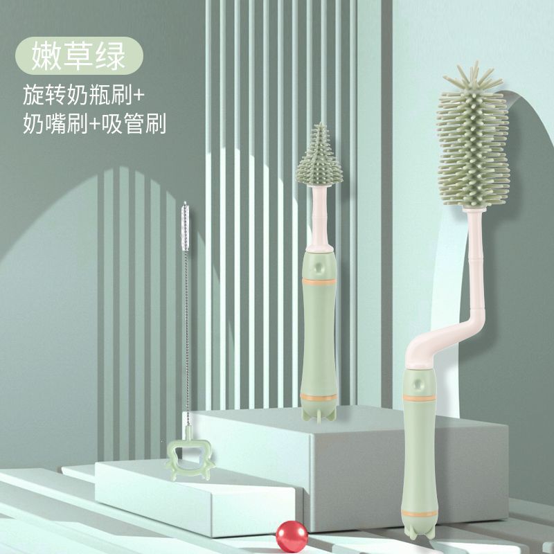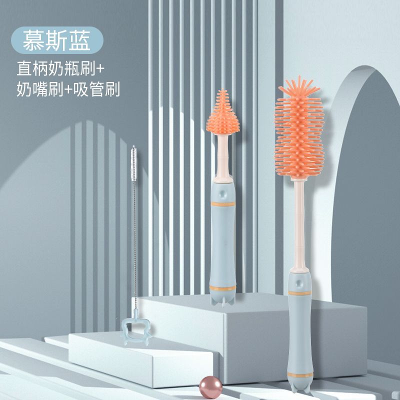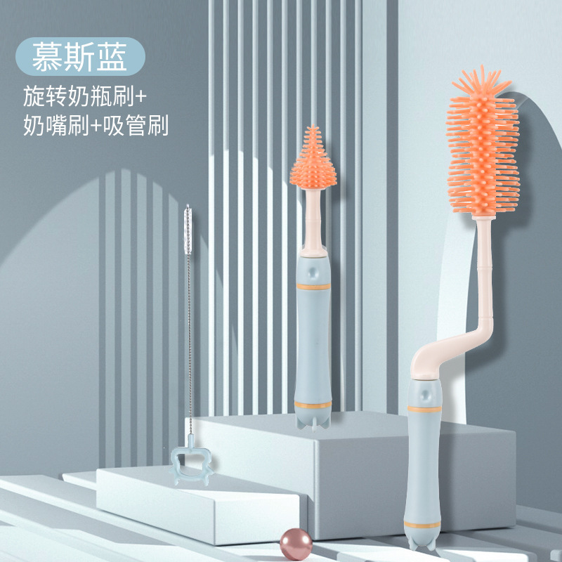 婴儿专用硅胶奶瓶刷 三色长柄清洗刷组合360度旋转清洗奶瓶刷套装