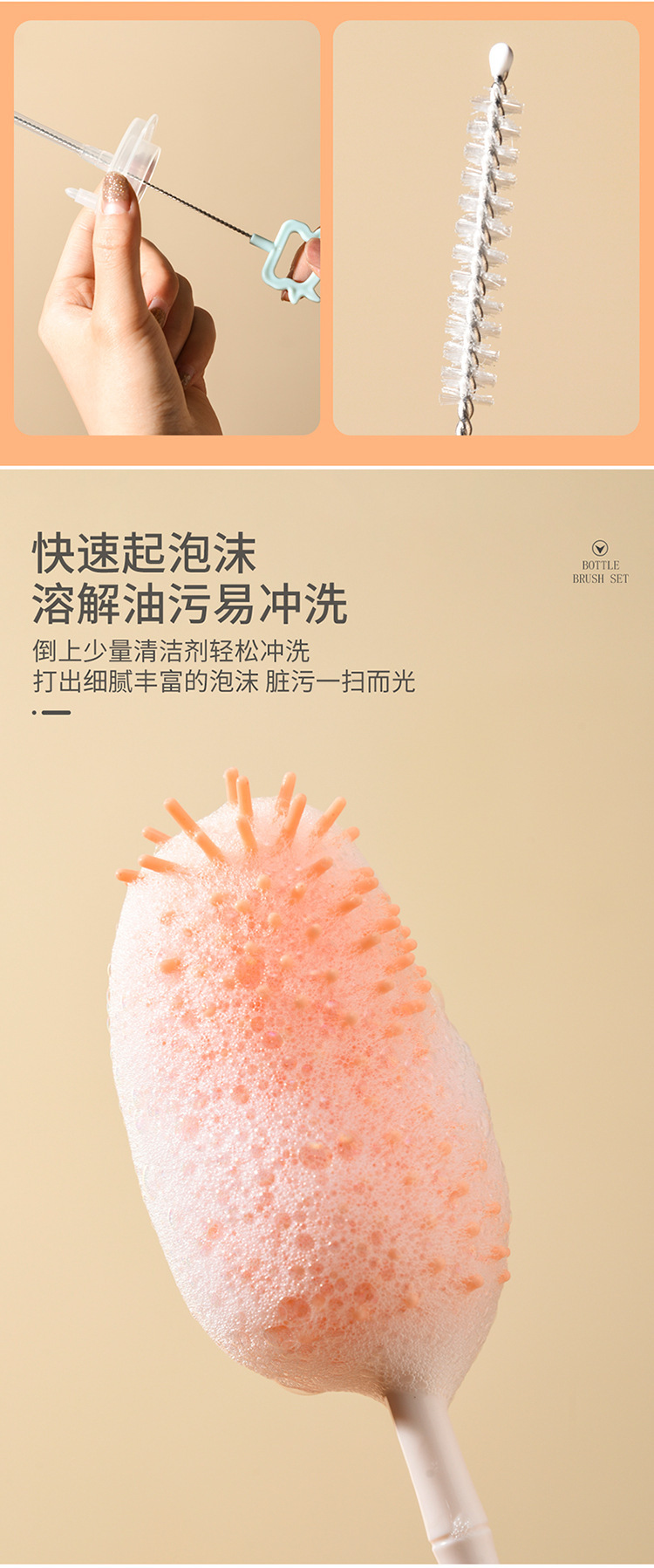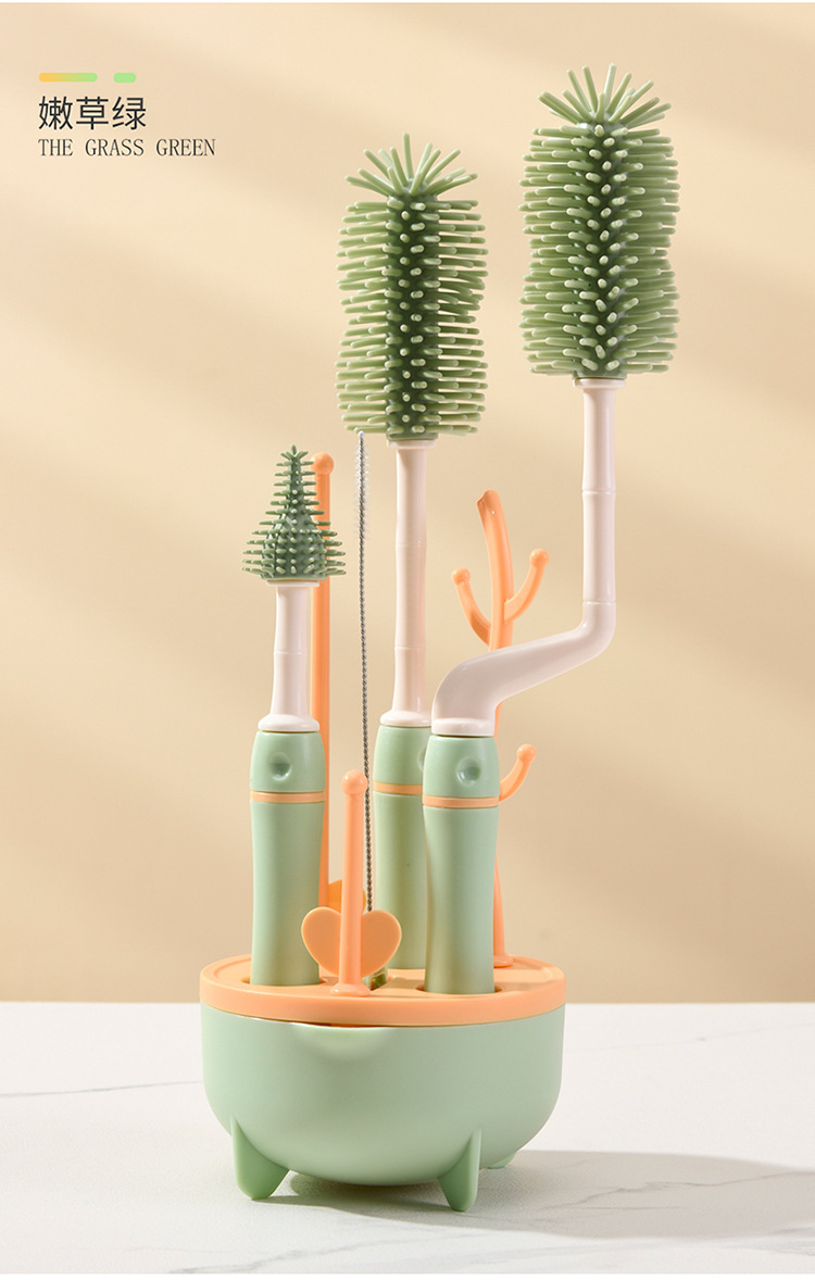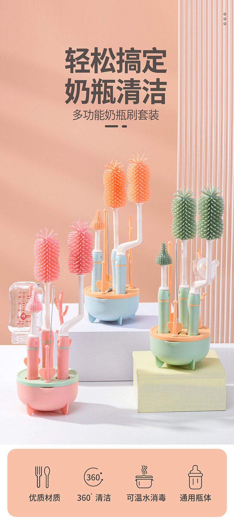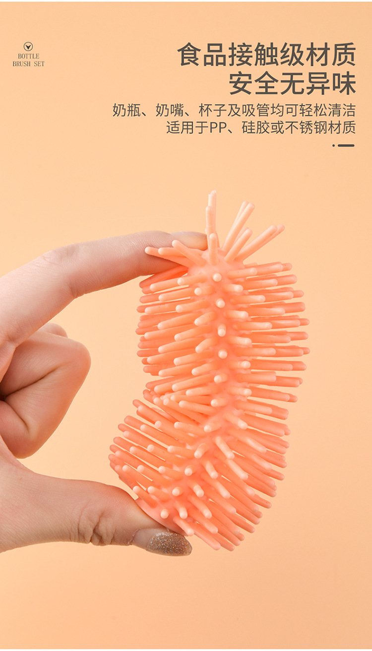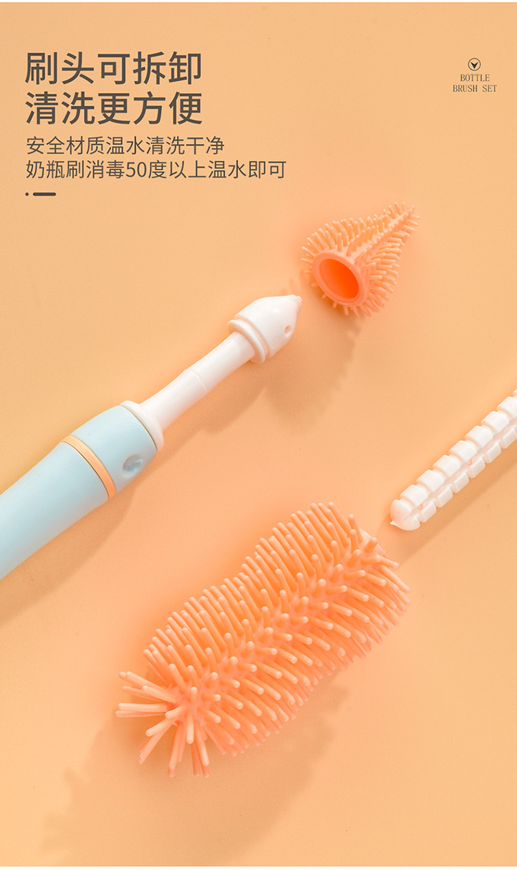 婴儿专用硅胶奶瓶刷 三色长柄清洗刷组合360度旋转清洗奶瓶刷套装