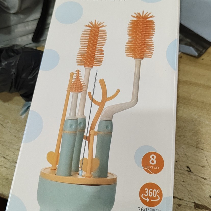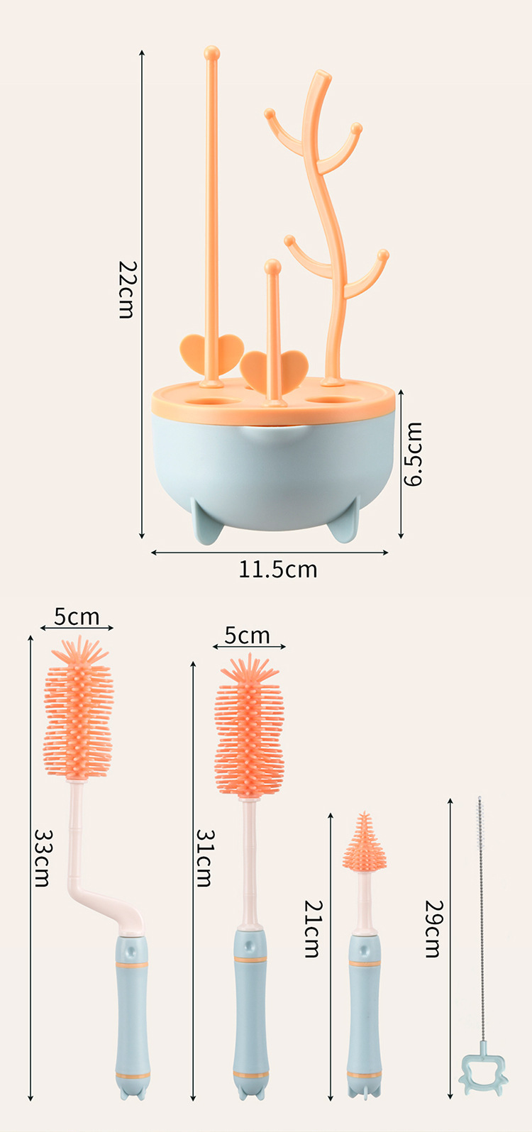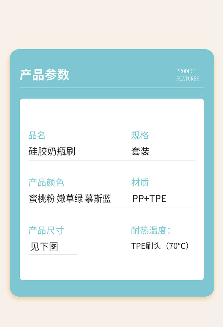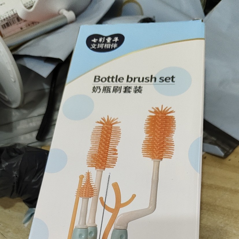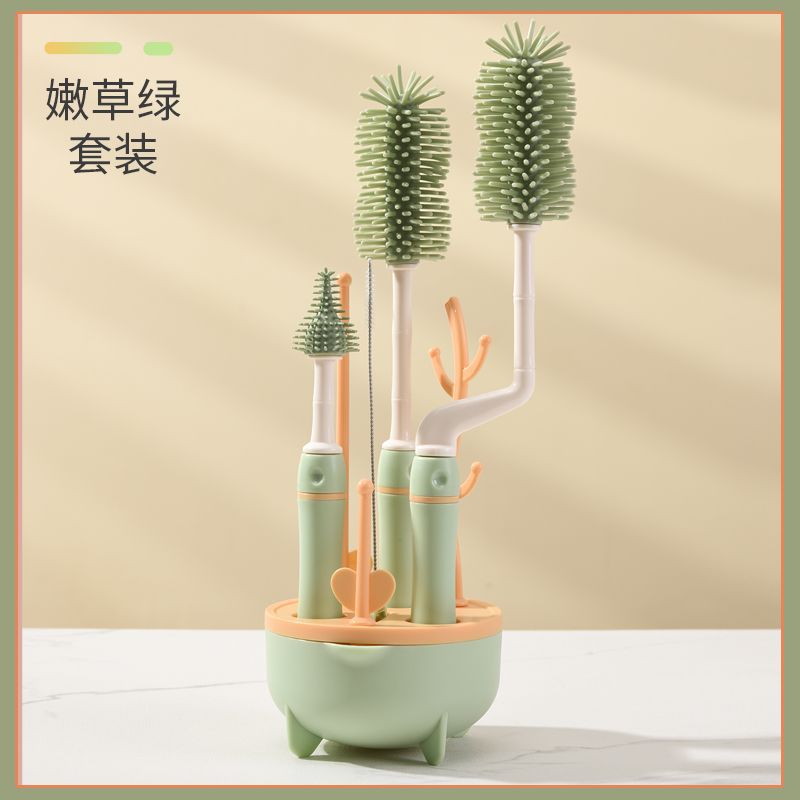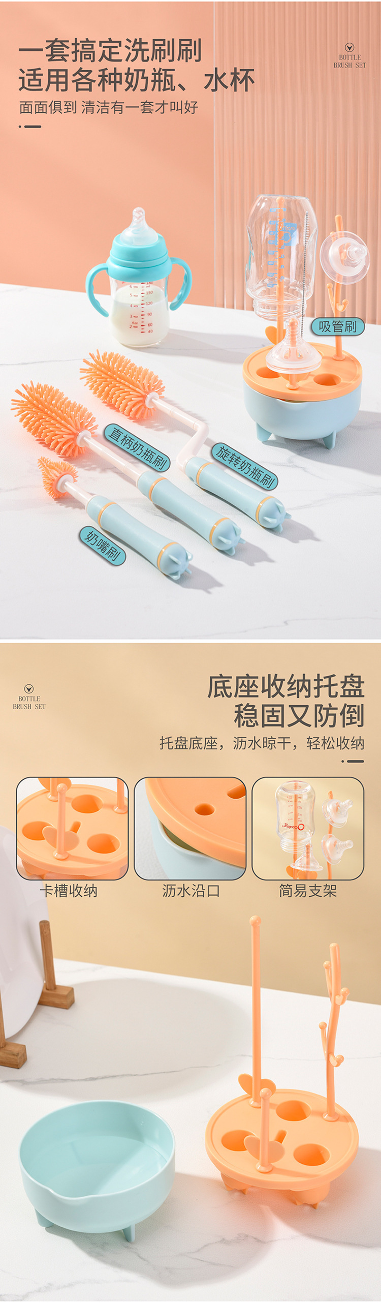 婴儿专用硅胶奶瓶刷 三色长柄清洗刷组合360度旋转清洗奶瓶刷套装