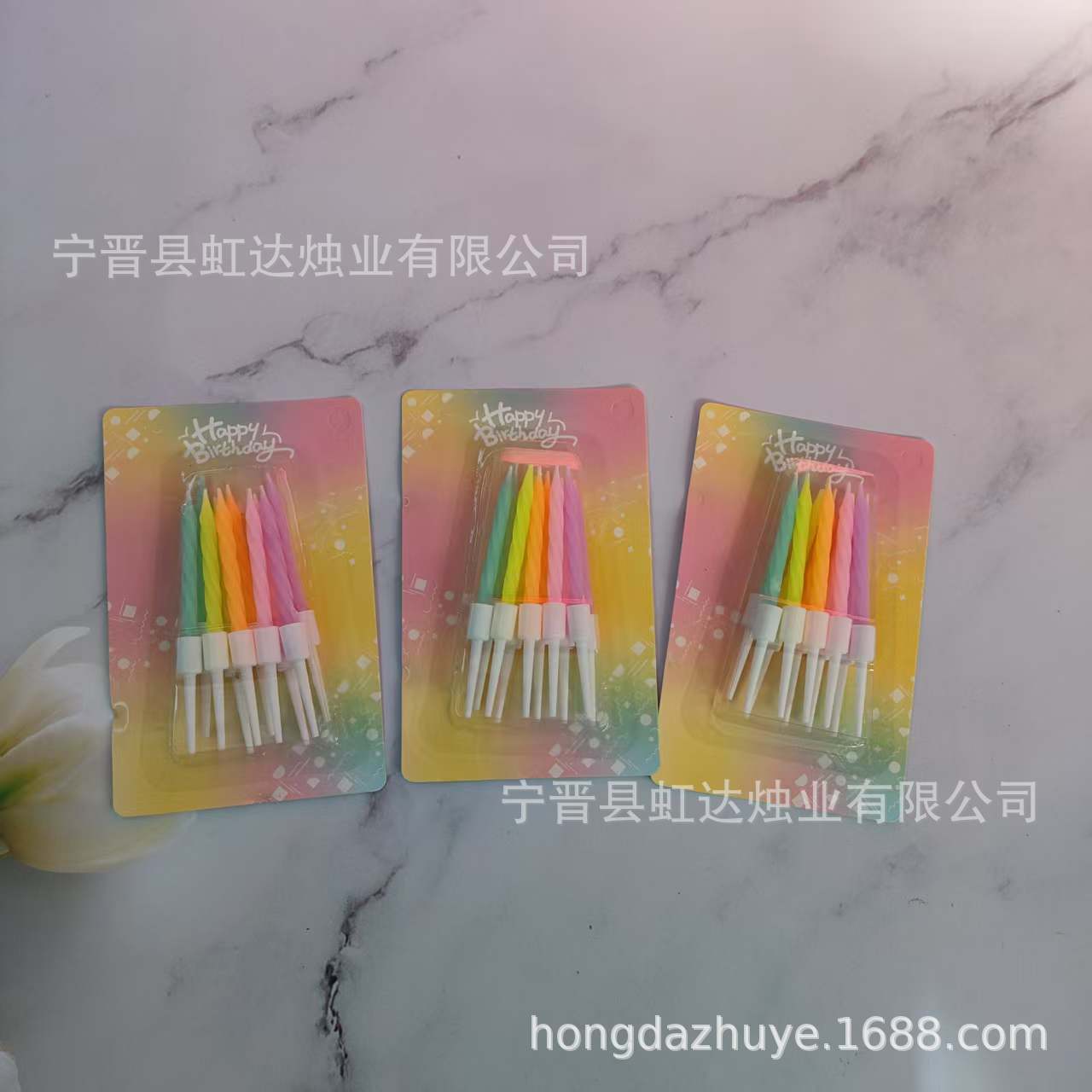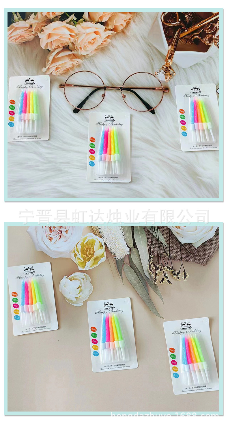 生日蛋糕蜡烛吸卡彩色螺纹蜡烛创意烘焙儿童庆生派对装饰蜡烛批发