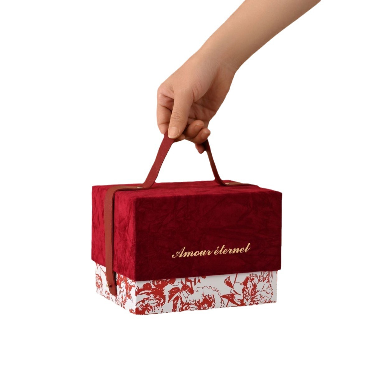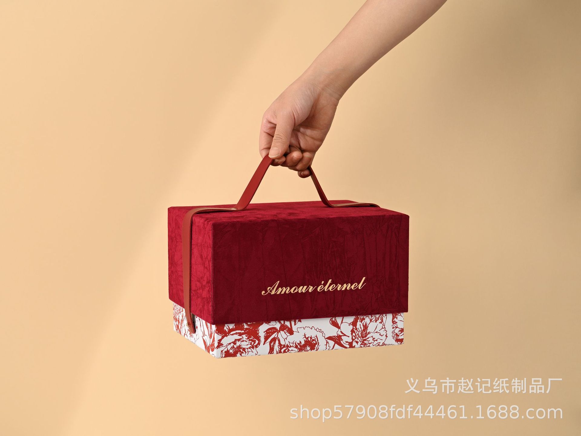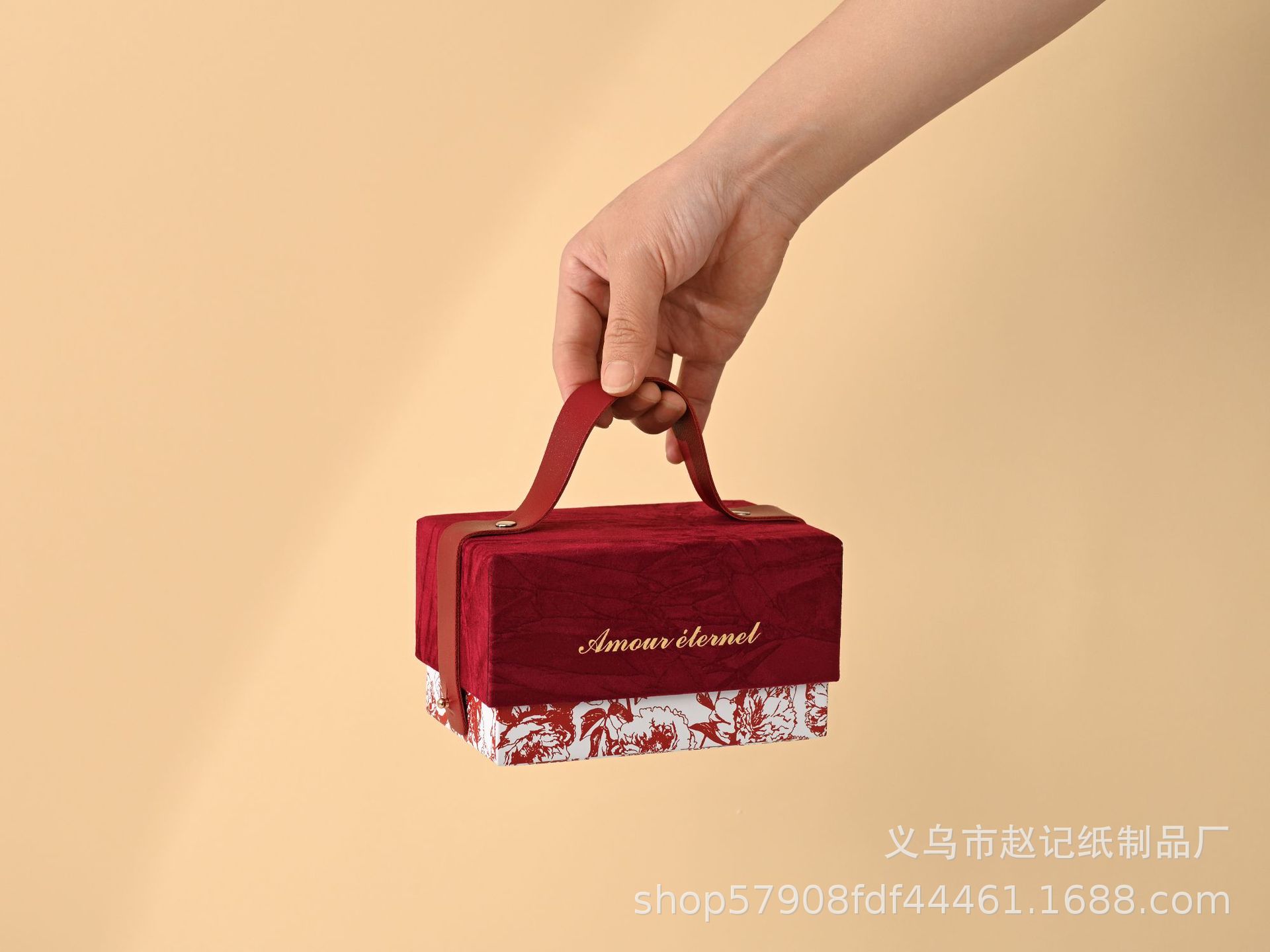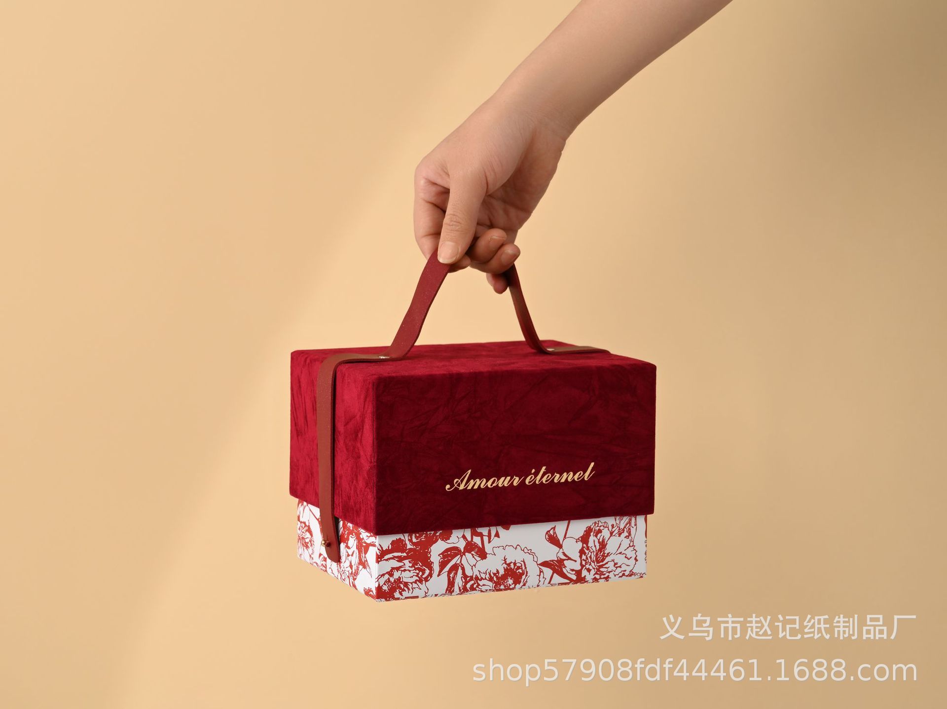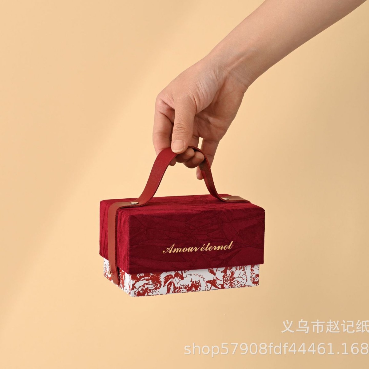 厂家现货高级丝绒手提圣诞礼品节日包装盒婚庆结婚免折叠伴手礼盒