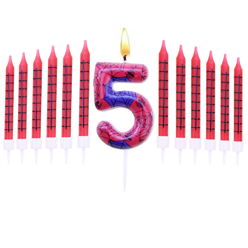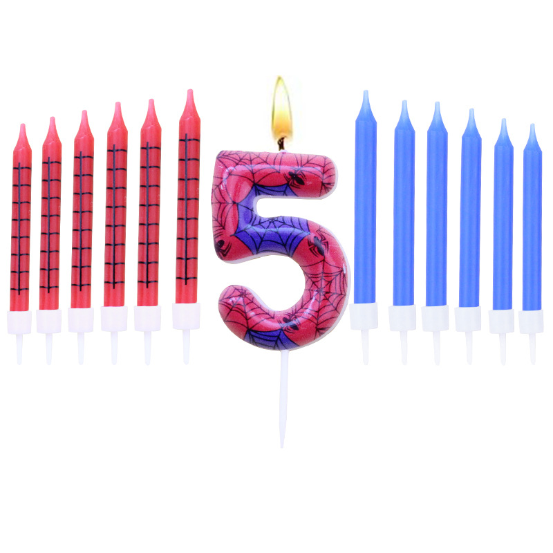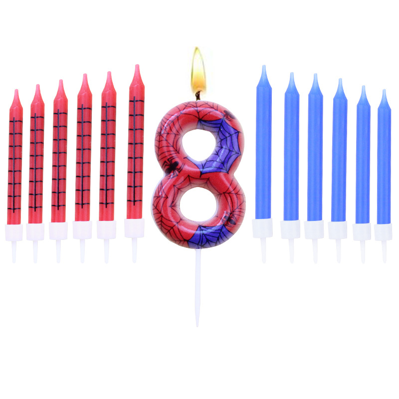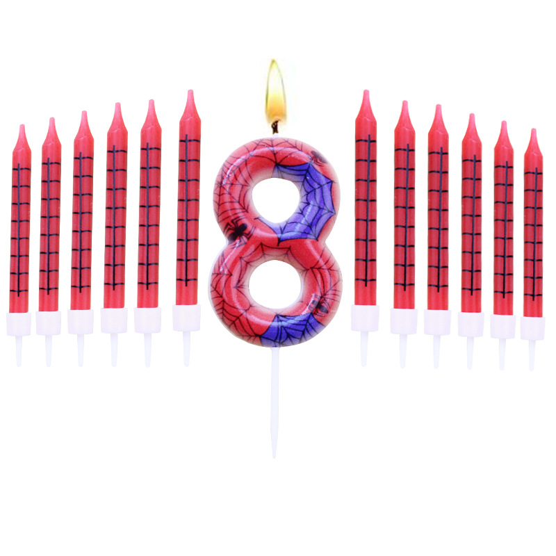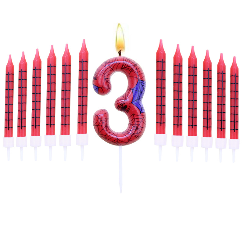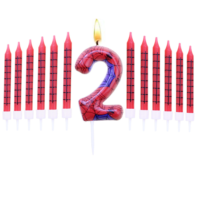 2024跨境亚马逊蜘蛛侠主题印花蜡烛 生日数字0-9烘焙装饰蜡烛组合