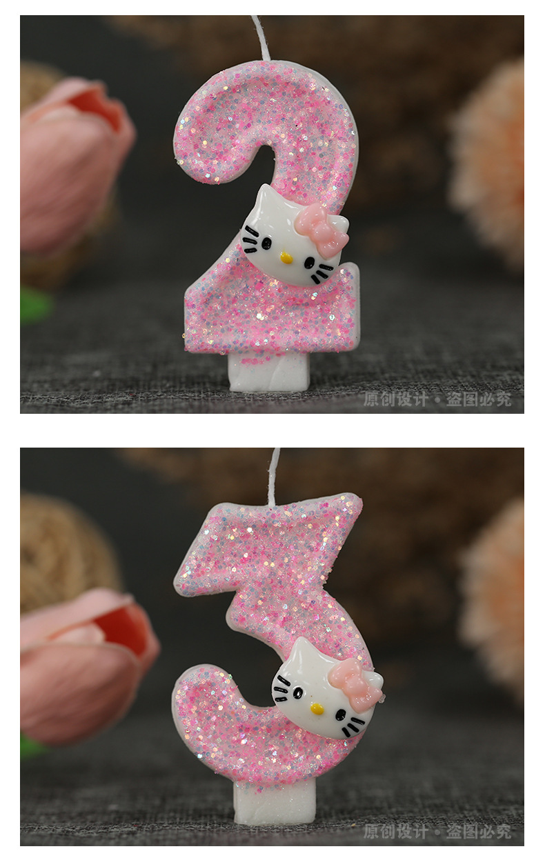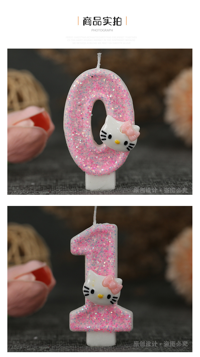 生日蜡烛猫头数字蜡烛女孩粉红色蛋糕装饰蜡烛供跨境电商亚马逊品