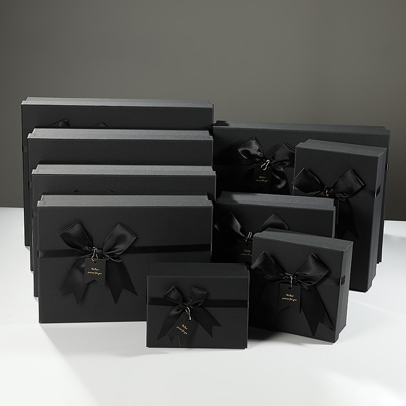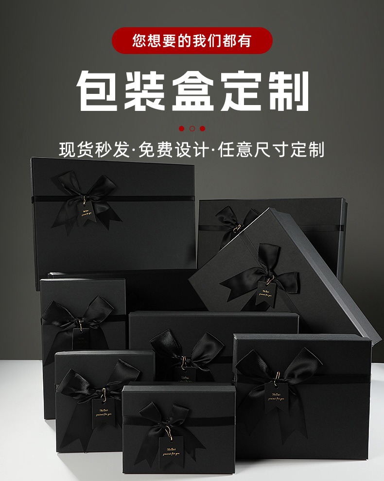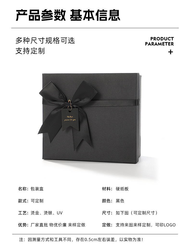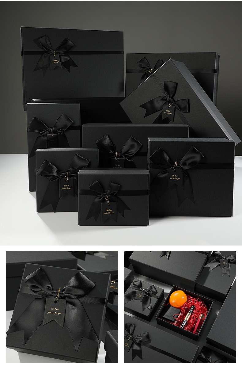 现货黑色礼盒伴手礼礼品盒ins风创意首饰蝴蝶结高级化妆品盒批发