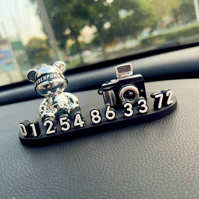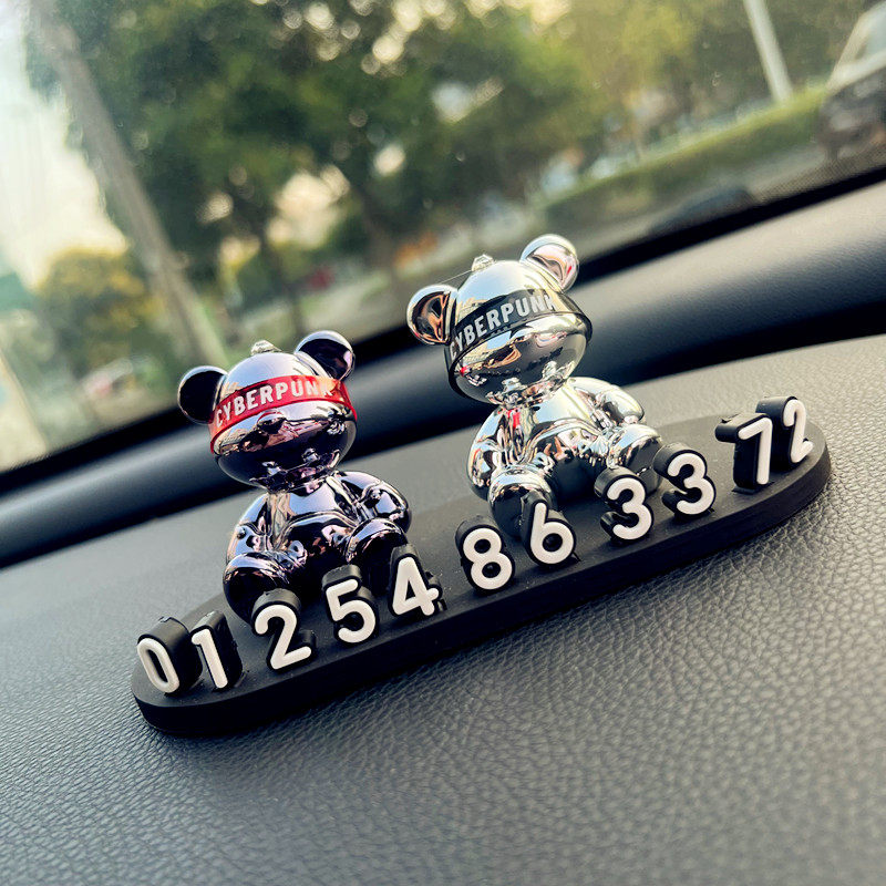 镀金小熊临时停车号码牌高级车载创意摆件男士挪车电话牌女生可爱