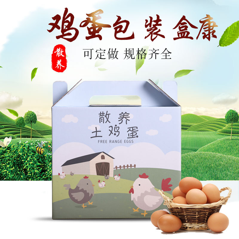 土鸡蛋包装盒纸箱30/50/100枚草柴山绿壳蛋礼品礼盒彩盒定 制做