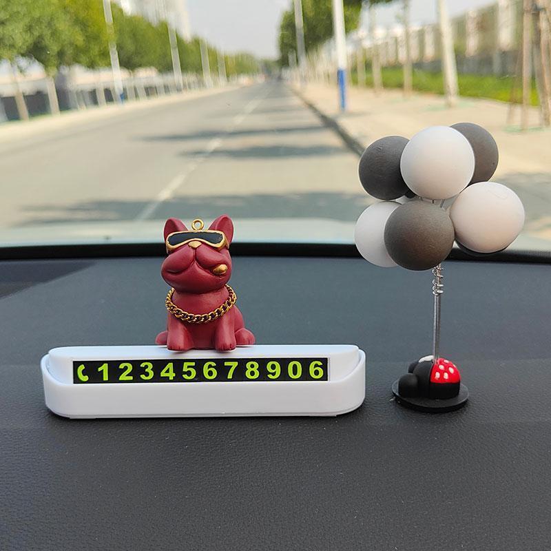 汽车车内用品挪车牌车饰移车号码牌装饰斗牛犬车载摆件车用可调节