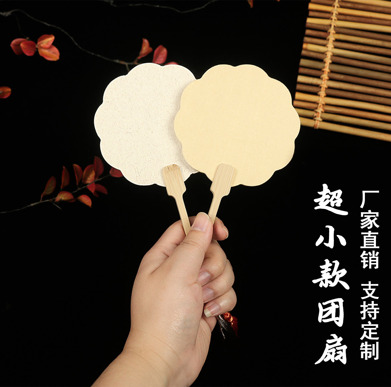 袖珍团扇漂漆扇双面宣纸手绘空白扇面景区打卡地标旅游小号扇子