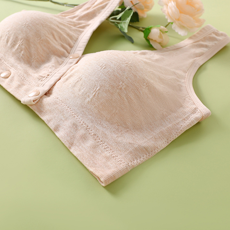 中老年文胸批发前开扣妈妈舒适彩棉透气文胸背心式无钢圈固定杯