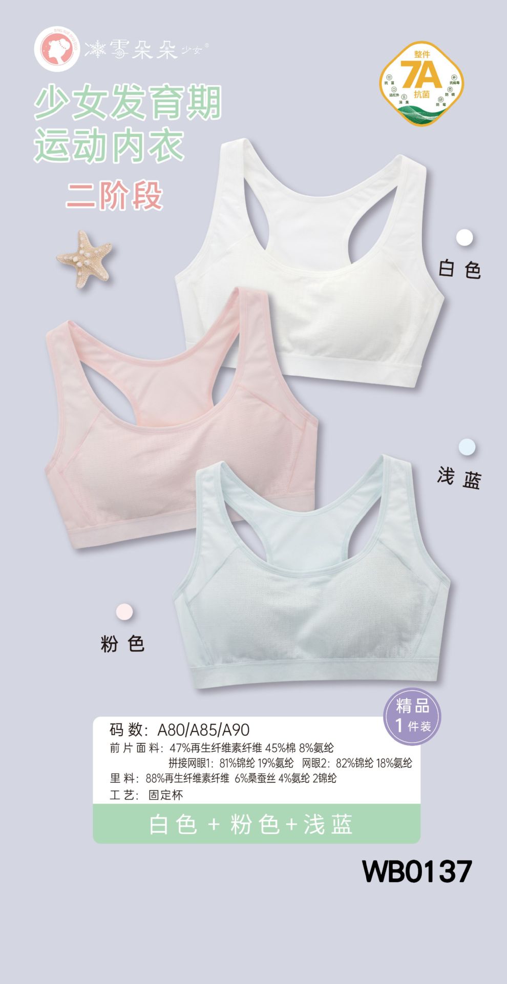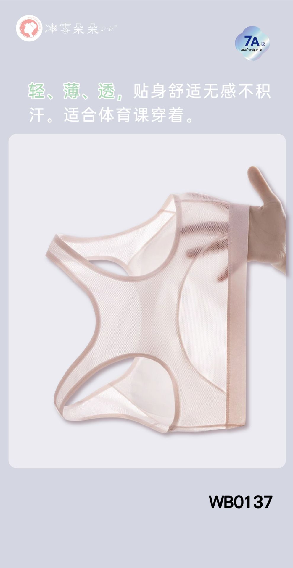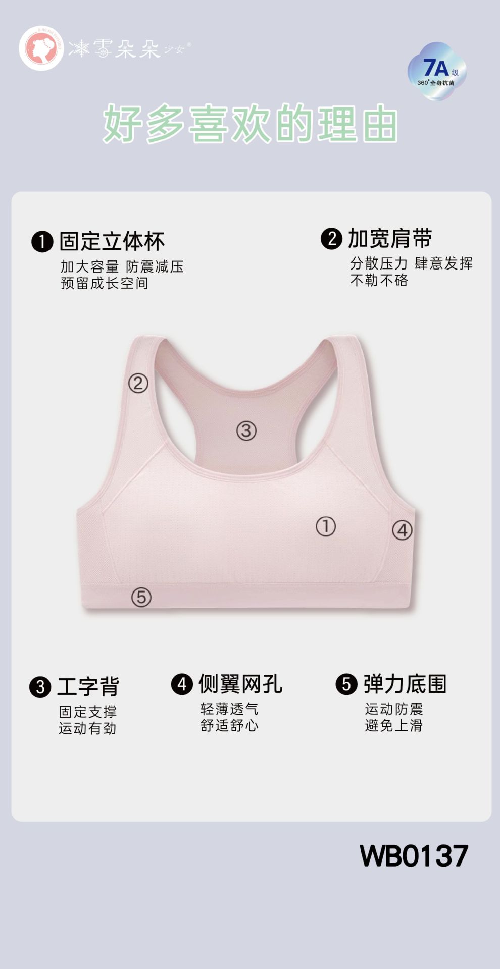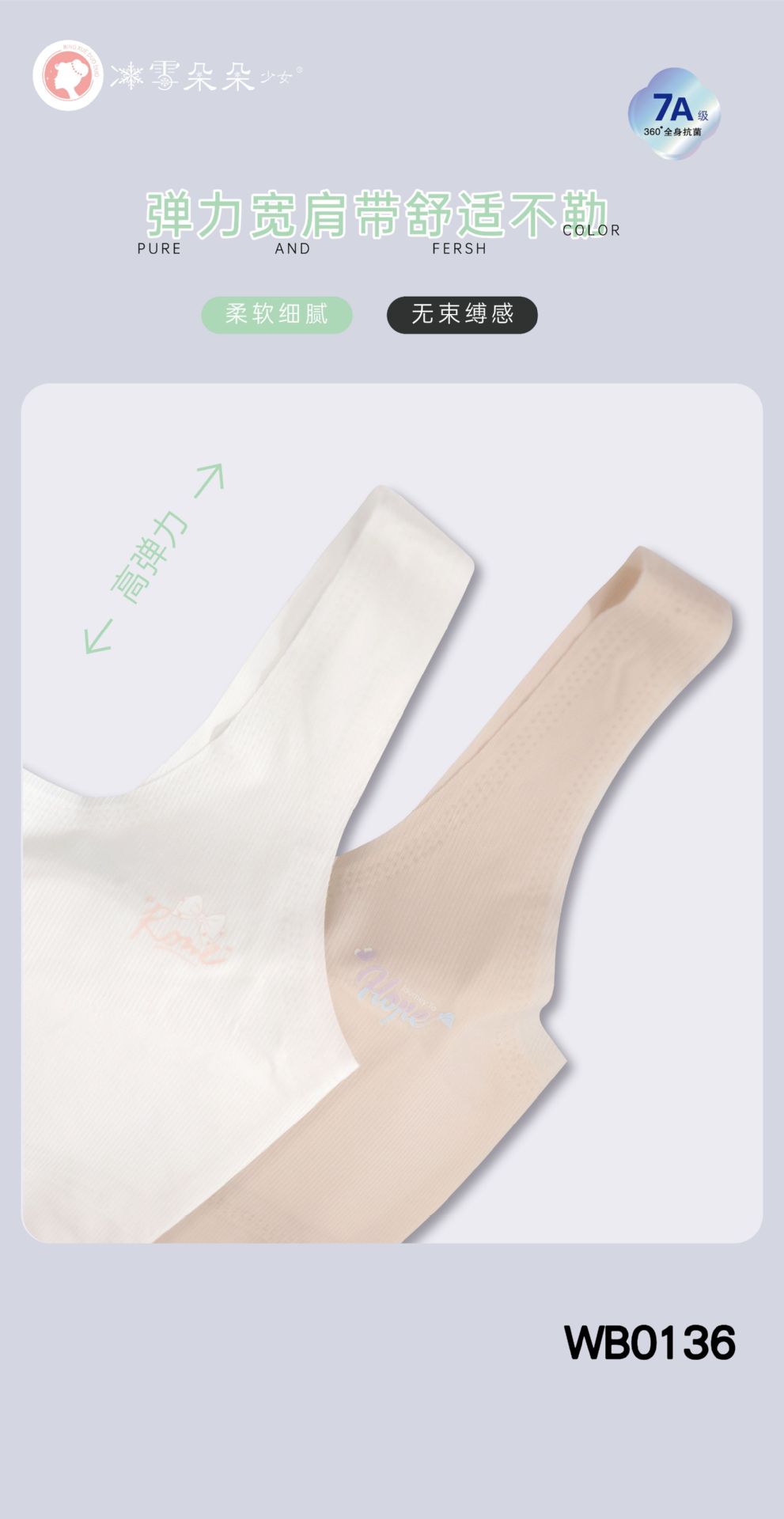 冰雪朵朵少女文胸大童内衣打底透气背心纯棉发育期初中高中生无痕