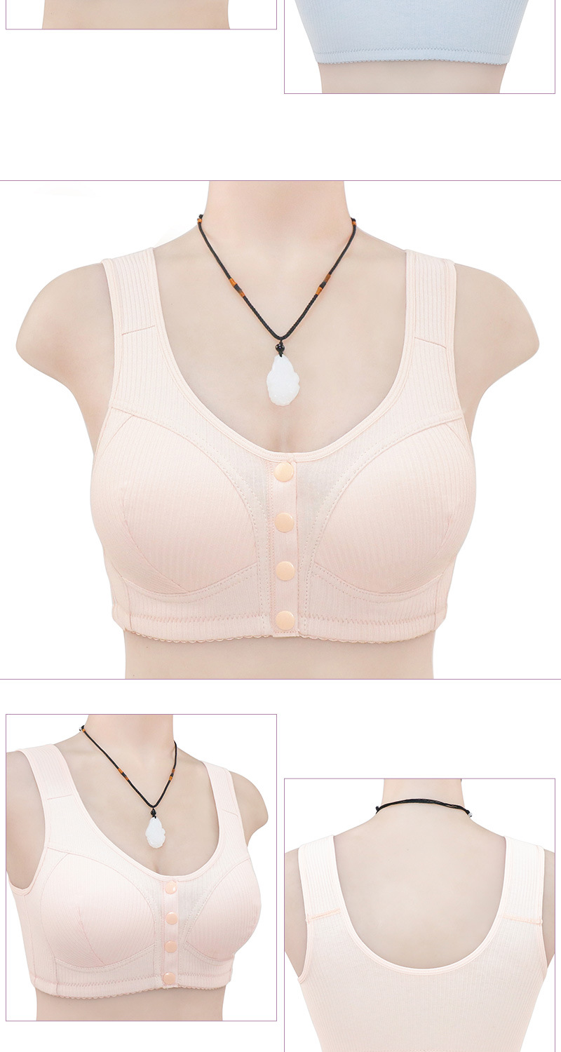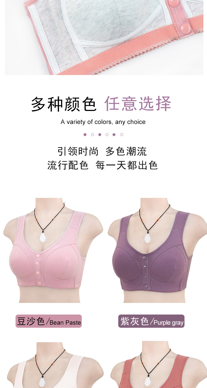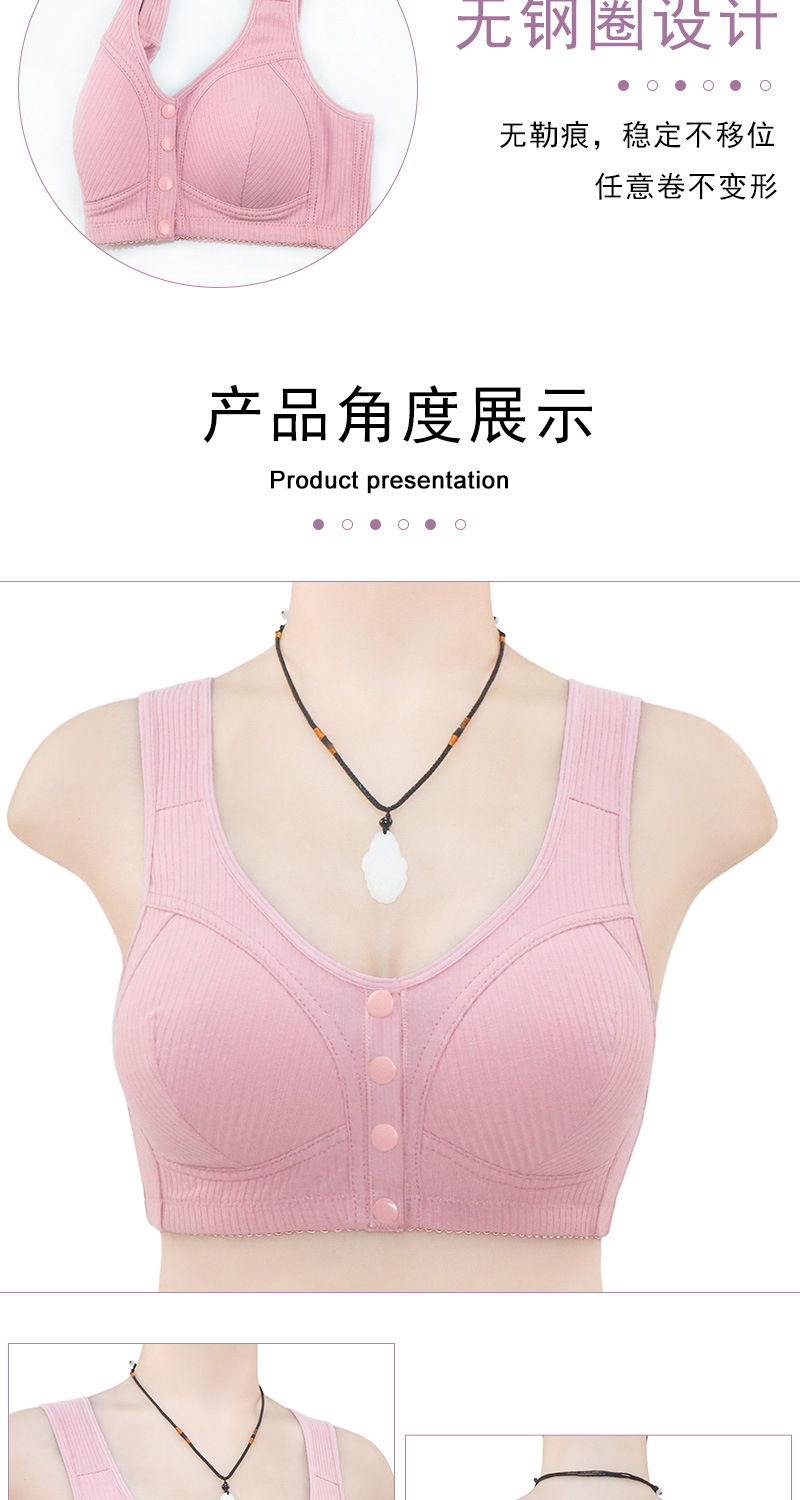 固定杯中老年纯棉内衣女新款前开扣背心式棉质妈妈大码无钢圈文胸