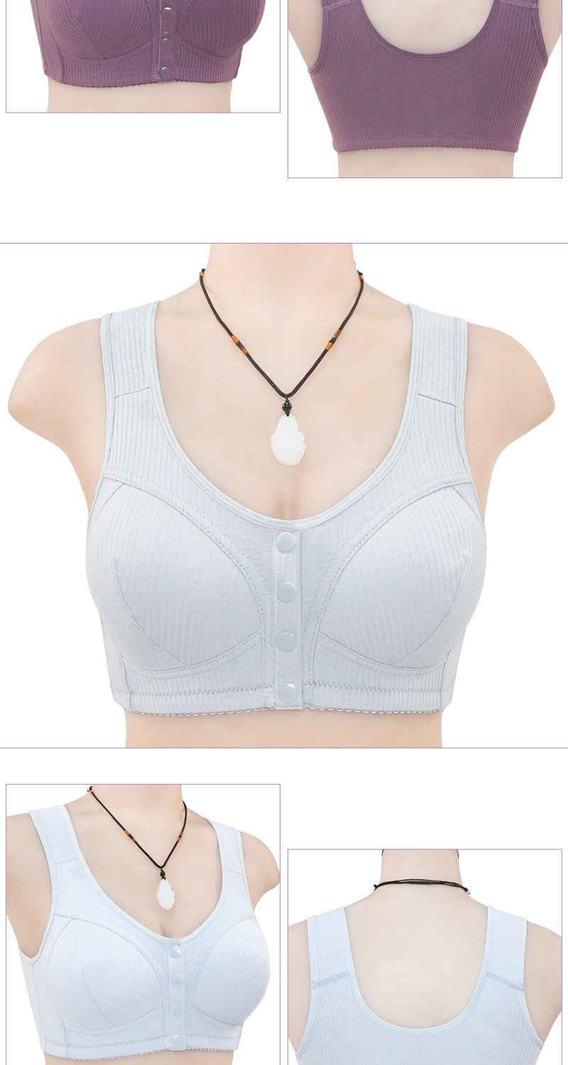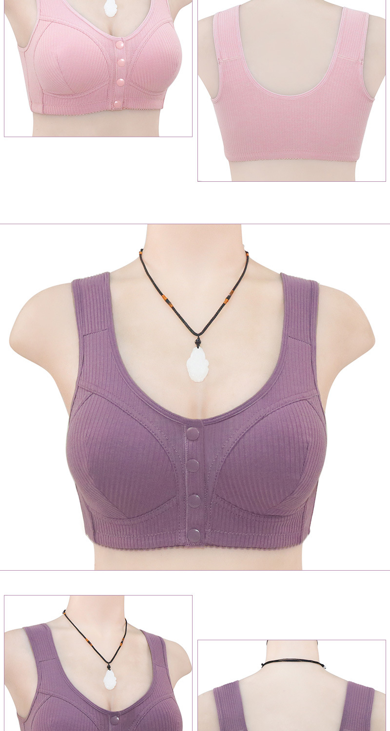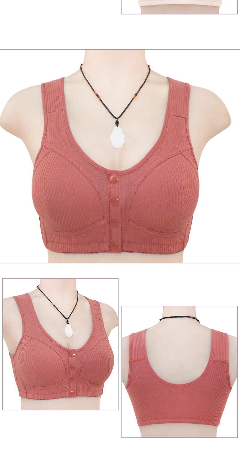 固定杯中老年纯棉内衣女新款前开扣背心式棉质妈妈大码无钢圈文胸